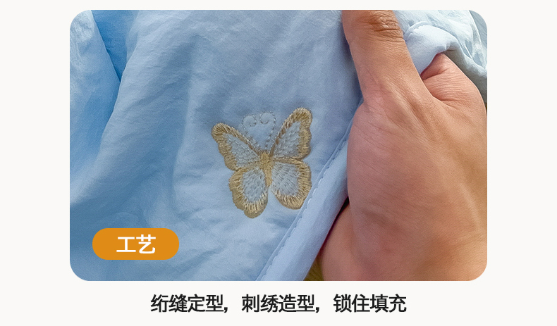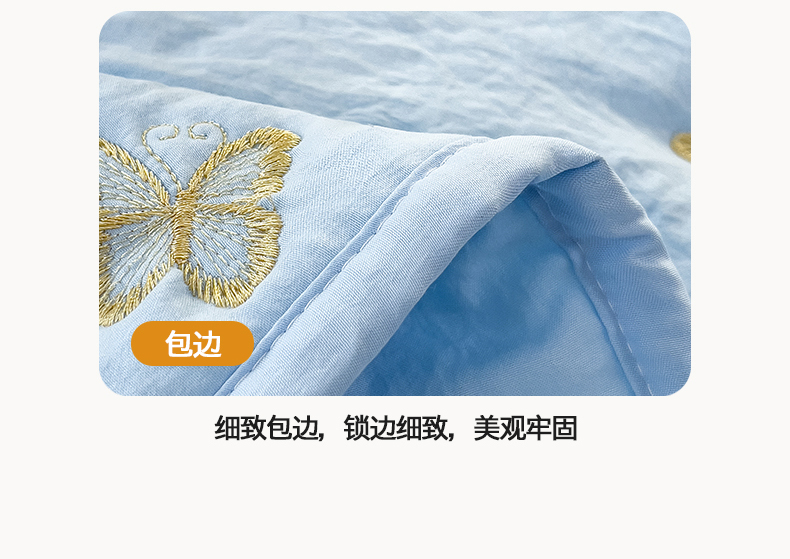 商品名称:兄弟坊 2026新款水洗棉大豆刺绣夏被夏凉被空调被午睡被 蝴蝶-蓝白