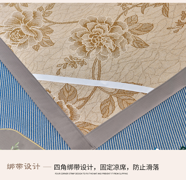 (总)小牛席业 2026新款牡丹清凉大提花冰丝席凉席席子,粉色,灰色,蓝色,香槟