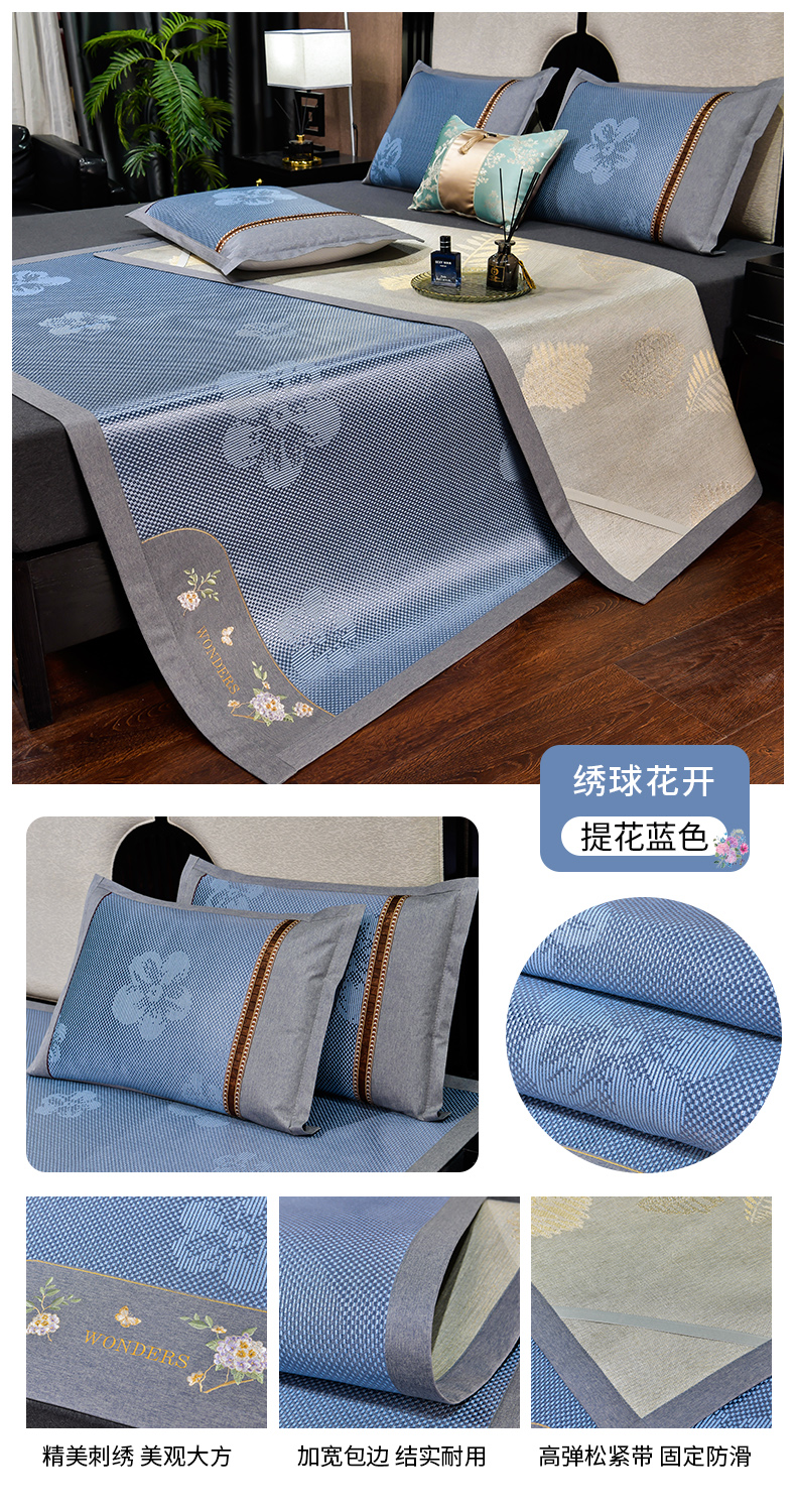 (总)2023新款超精密冰丝席-小斜纹系列-床笠款藤席凉席竹席,粉色,蓝色,绿色,银灰