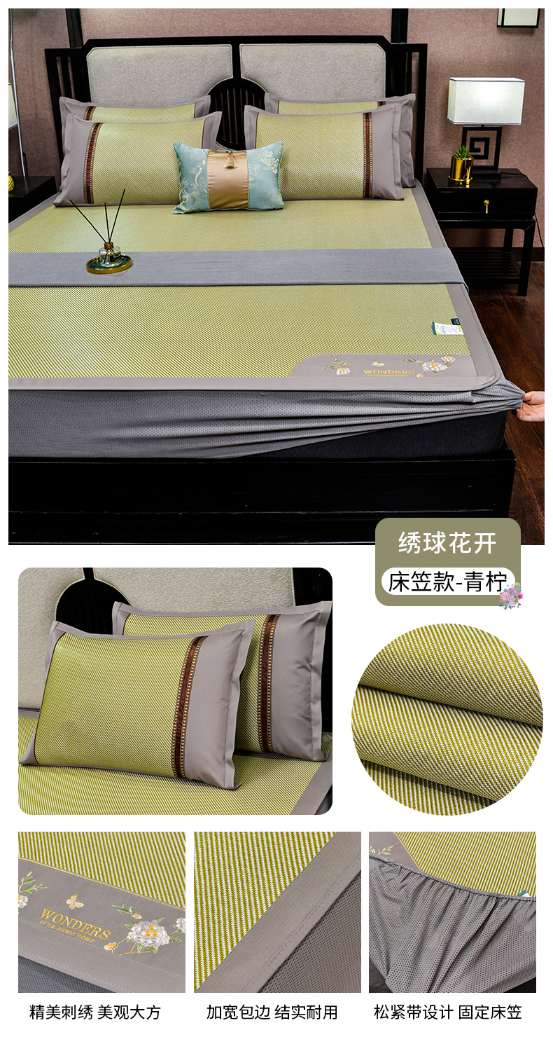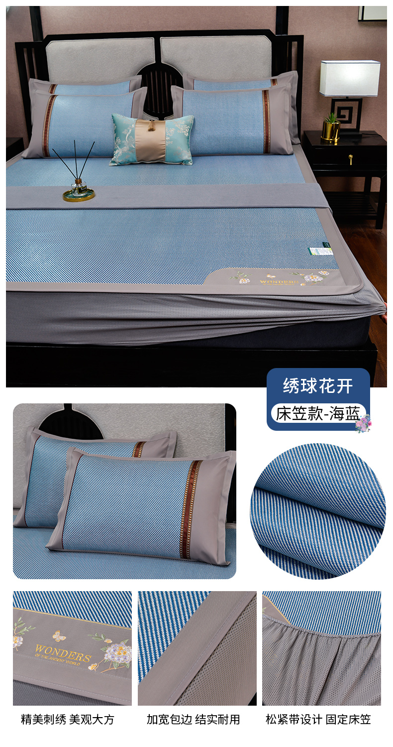 当前位置: 91家纺网 > 商品网购 > 床上用品 > 凉席 > 凉席套件 > 小牛席业 2026新款绣球花开-冰藤双面席系列(床笠款)凉席藤席冰藤席竹席空调席草席冰丝席豆豆席乳胶席三件套 绣球花开-冰藤床笠款(海蓝)