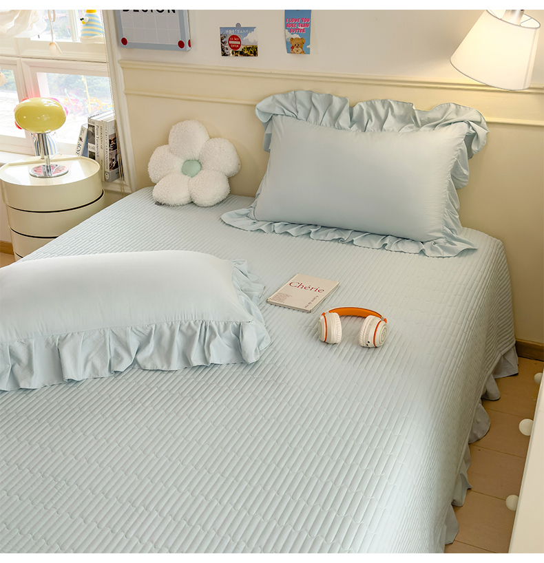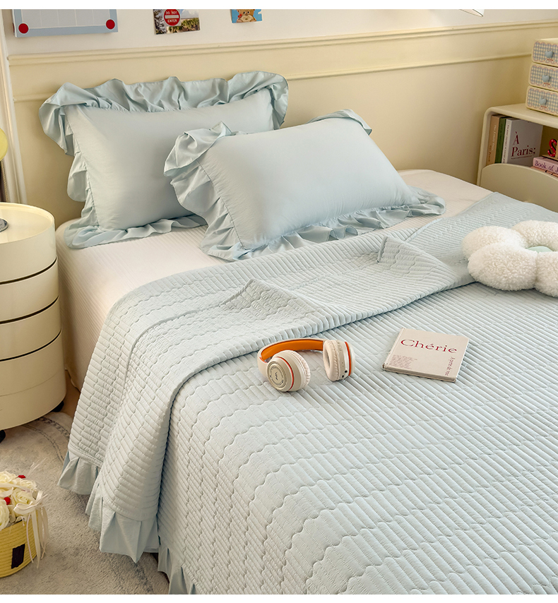 商品名称:兄弟坊 2026新款韩版凉感皱皱绵花边款加棉床盖 床护垫 加棉床单 凉感皱皱绵-天空蓝