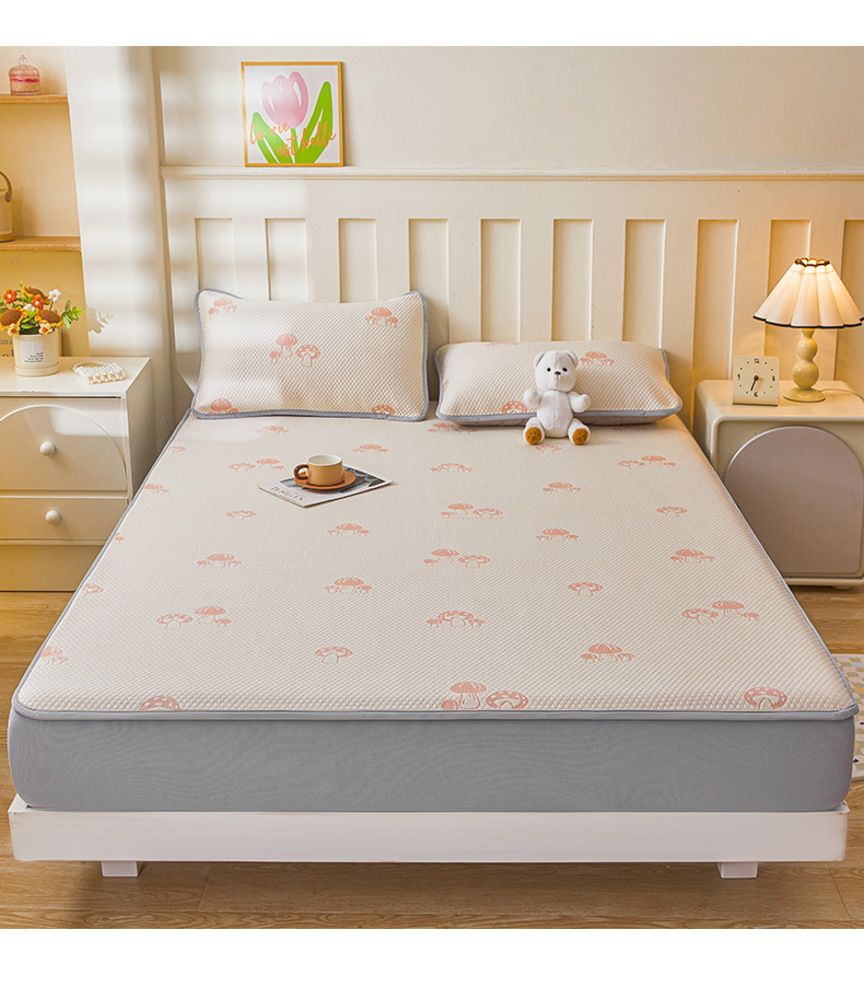 (总)凯罗 2026新款凉感提花冰丝床笠床席三件套冰感抗菌床席床笠三件套--床席款,简约生活--粉
