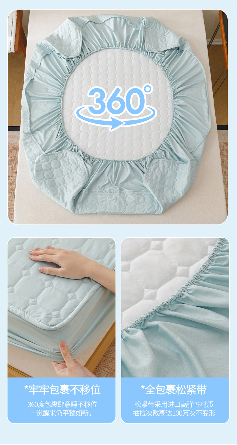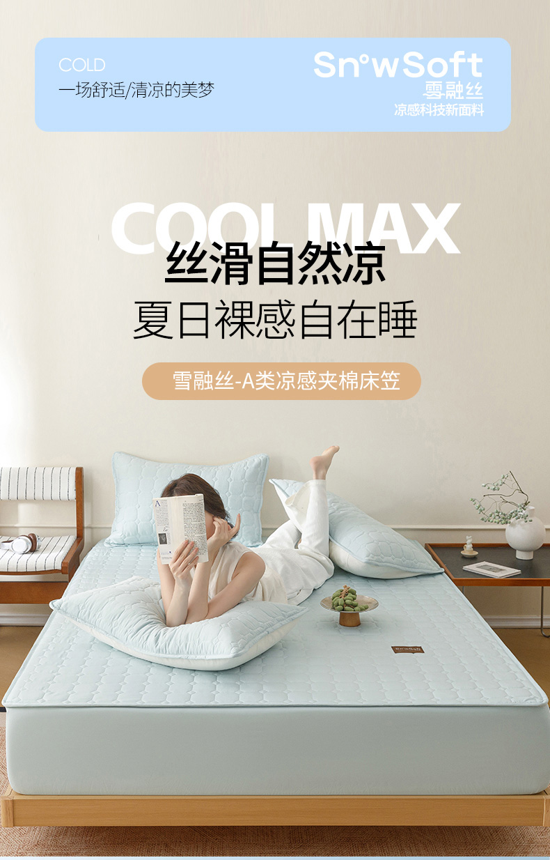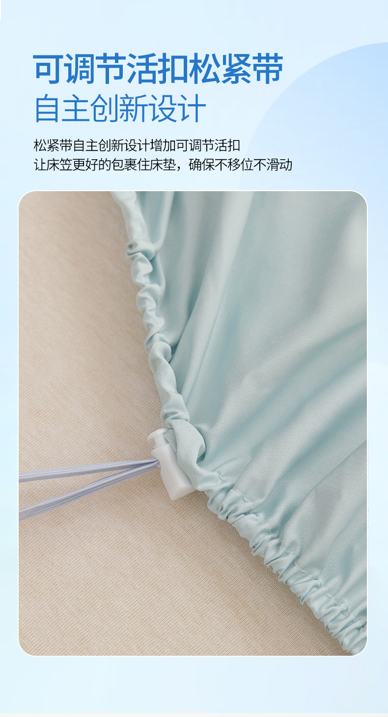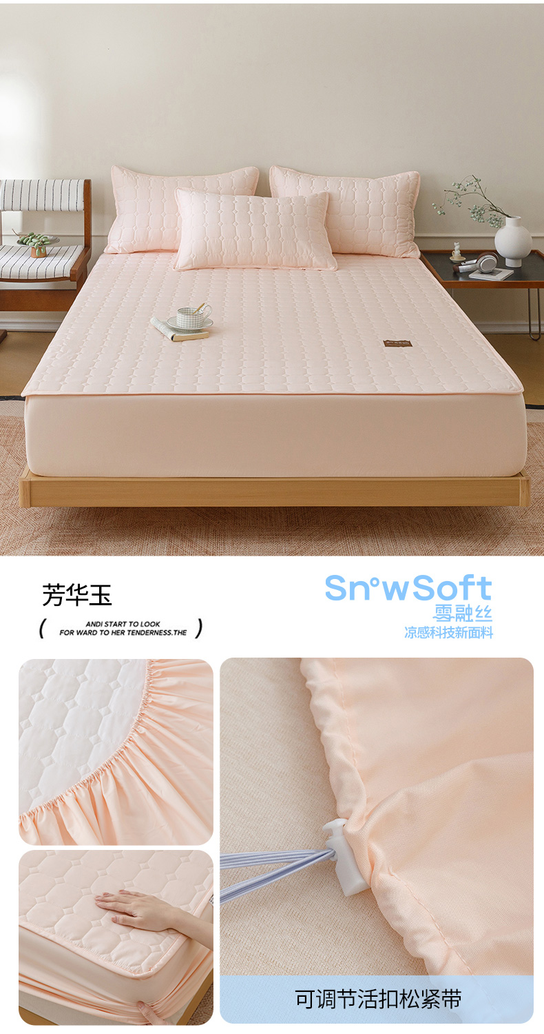 (总)胜权家纺 2026新款A类雪融丝凉感夹棉床笠可调节松紧活扣凉席