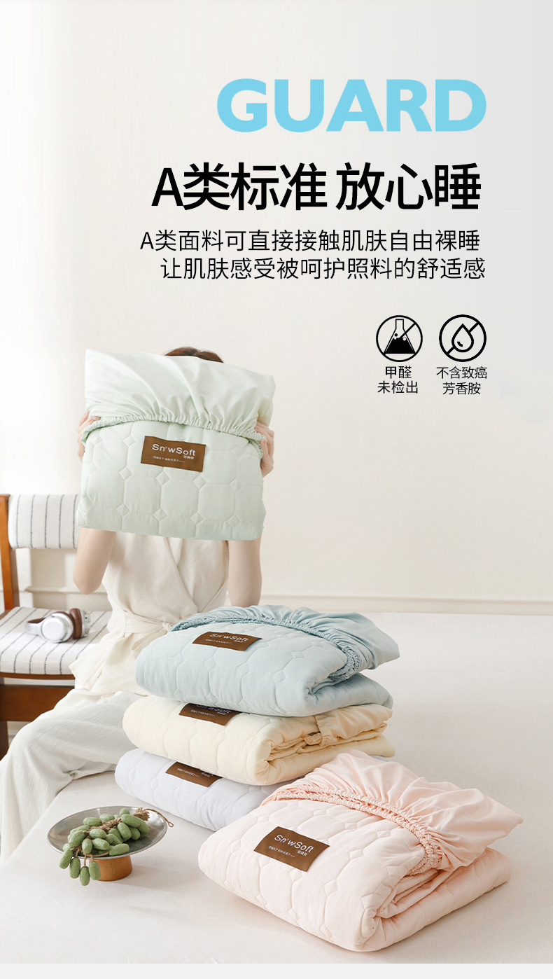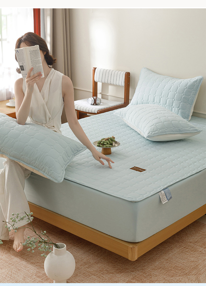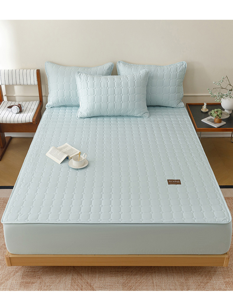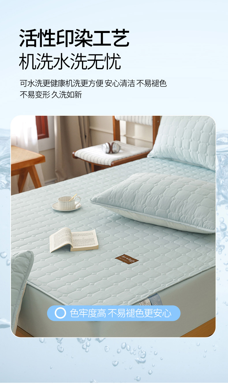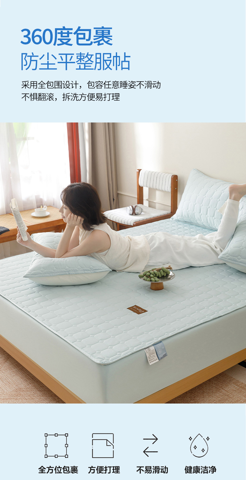 (总)胜权家纺 2026新款A类雪融丝凉感夹棉床笠可调节松紧活扣凉席