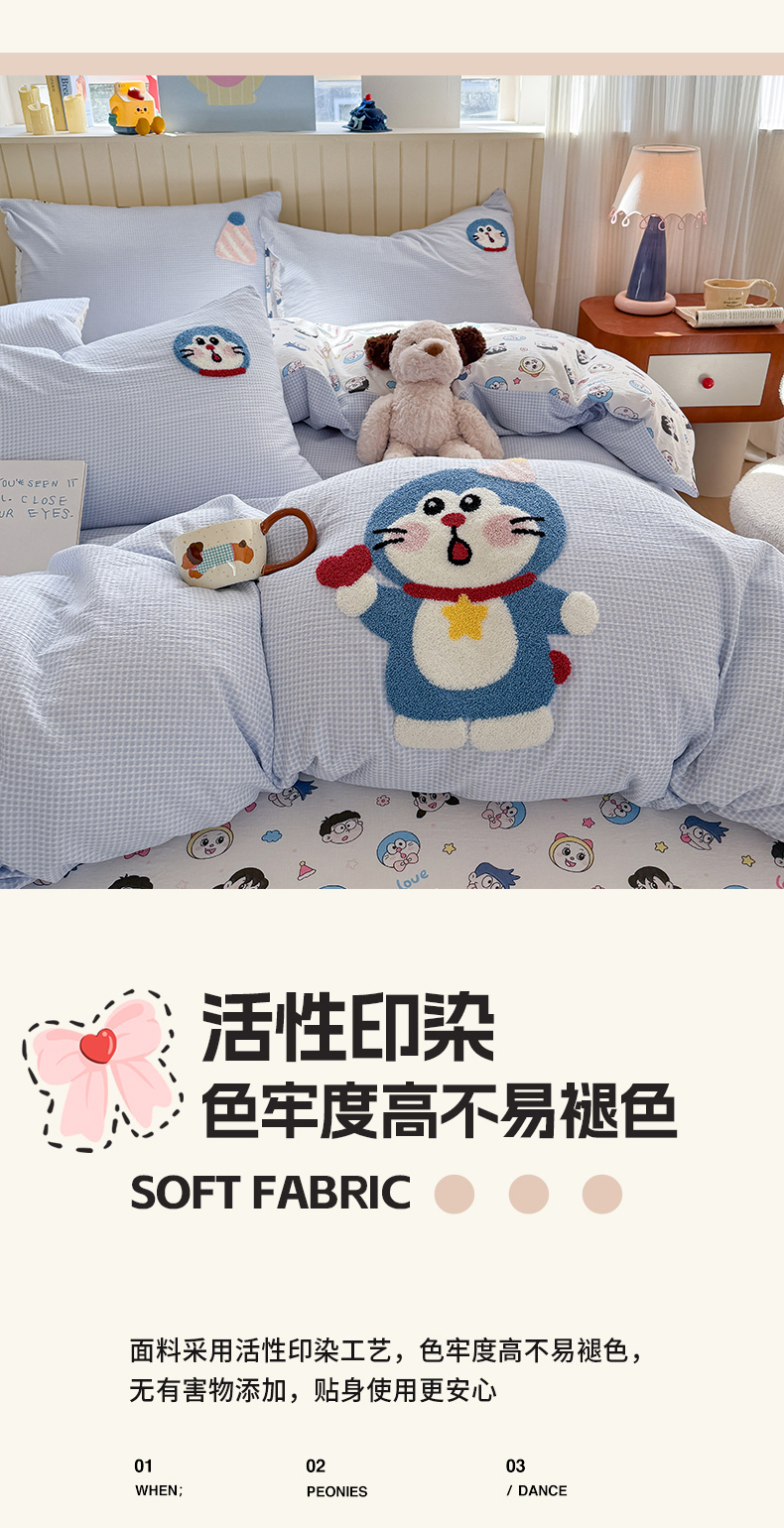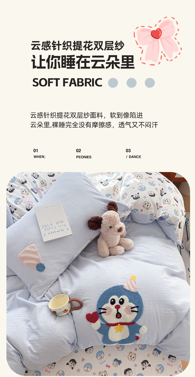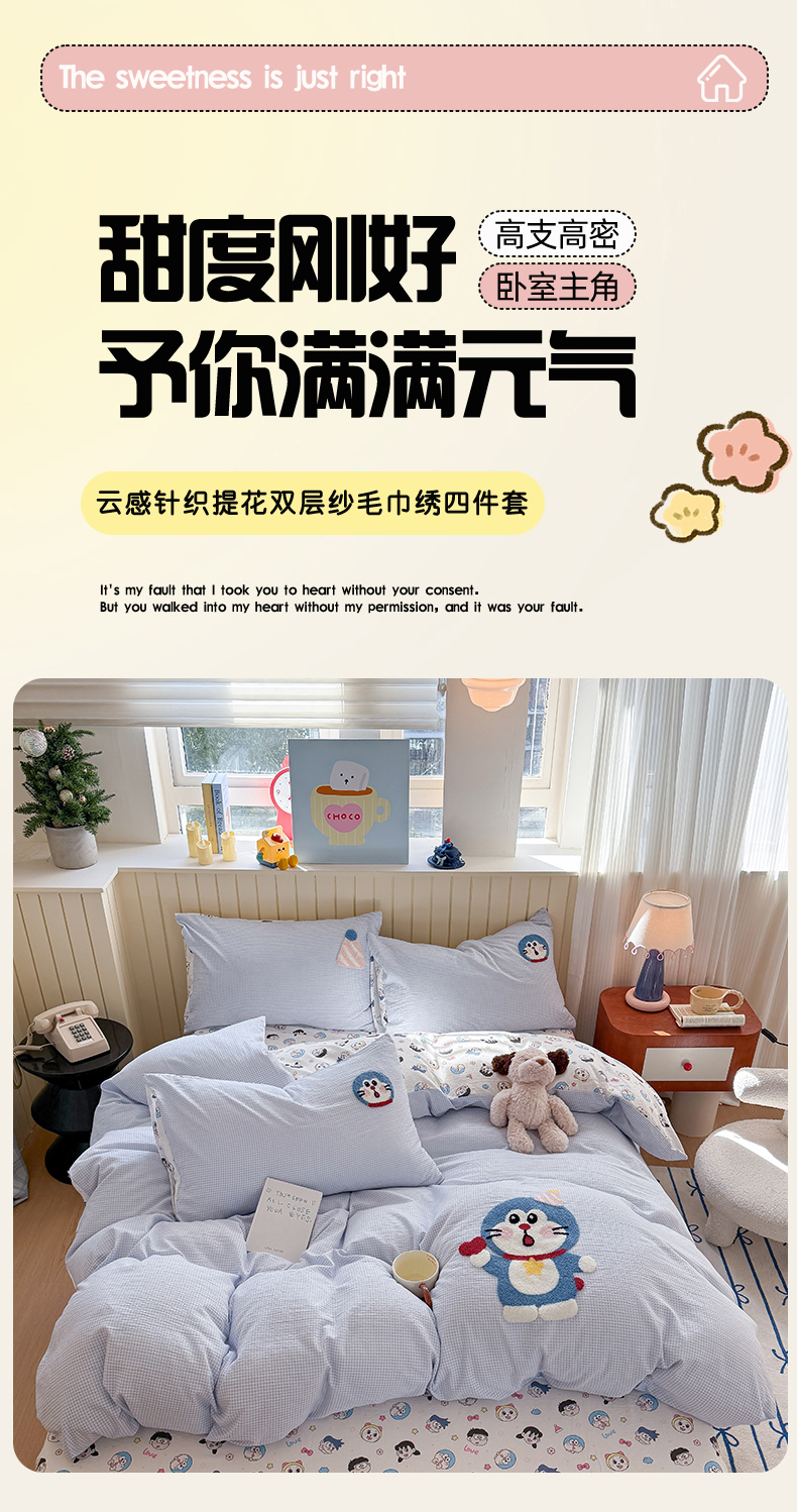 当前位置: 91家纺网 > 商品网购 > 床品套件 > 四件套 > 针织棉四件套 > 艾特你 2026新款针织提花双层纱可爱毛巾绣四件套 可爱叮叮