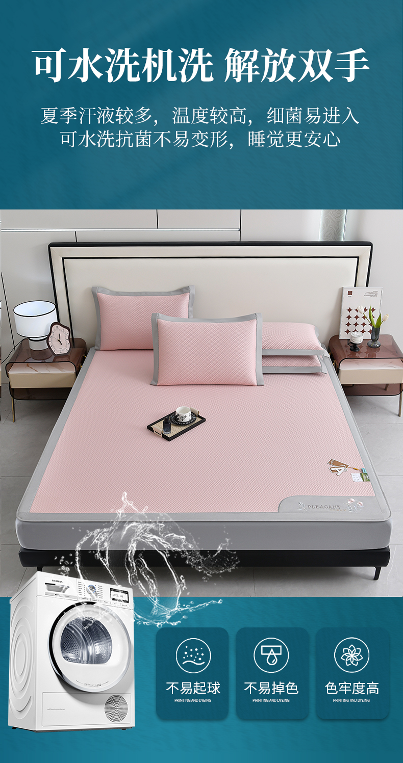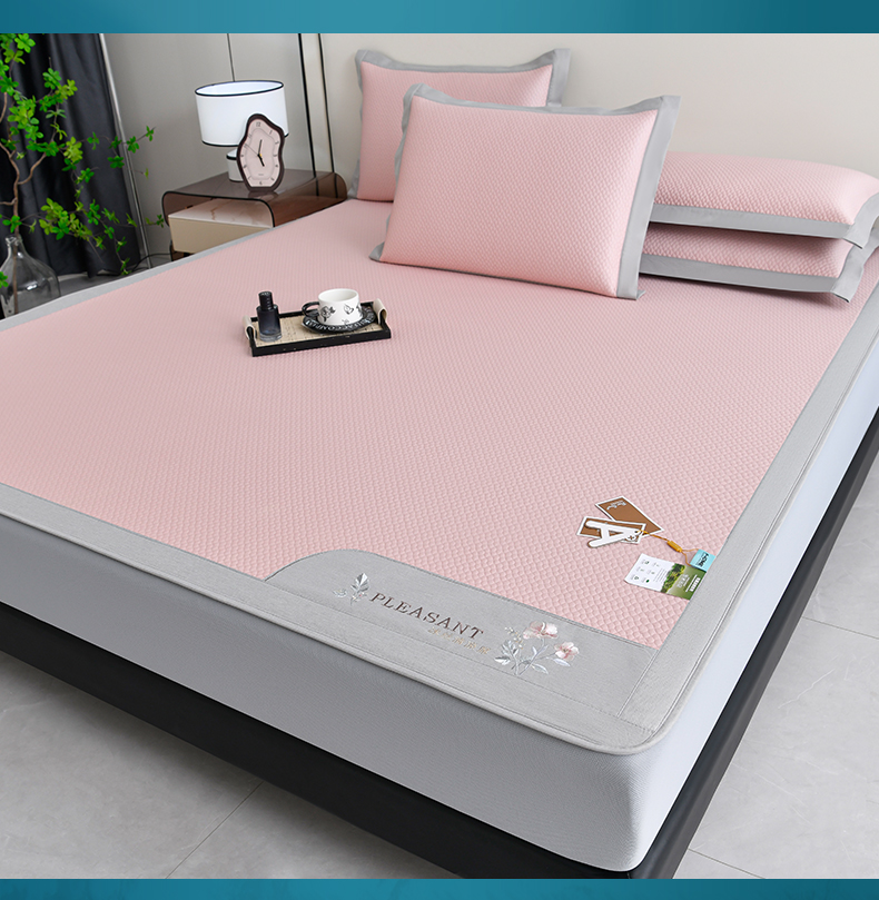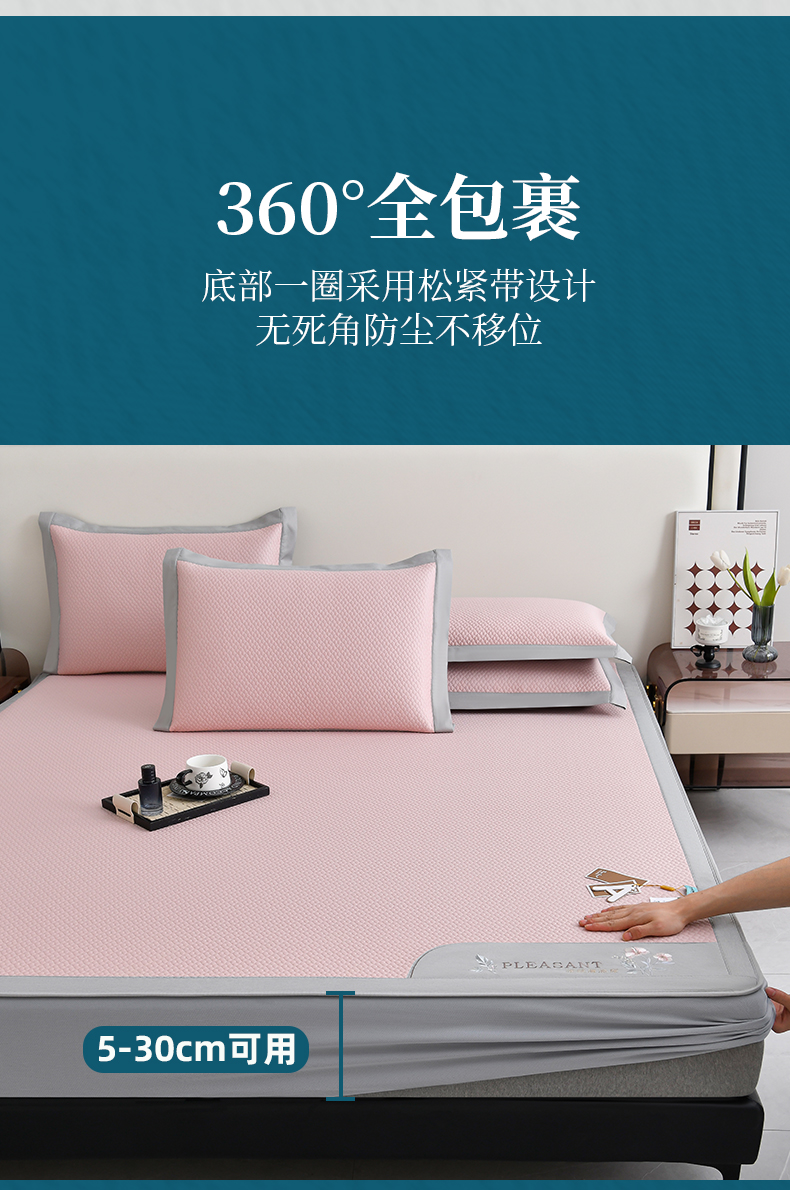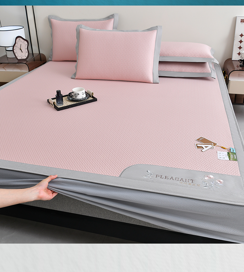 (总)2023新款超精密冰丝席-小斜纹系列-床笠款藤席凉席竹席,粉色,蓝色,绿色,银灰
