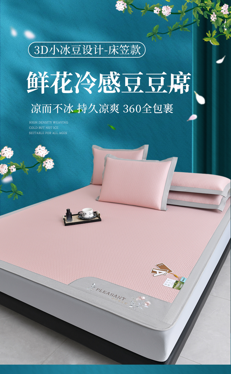商品名称:小牛席业 2026新款3D按摩-鲜花清凉豆豆席系列(床笠款)藤席冰藤席冰丝席可机洗凉感冰丝席豆豆席PE霸王藤席 粉色