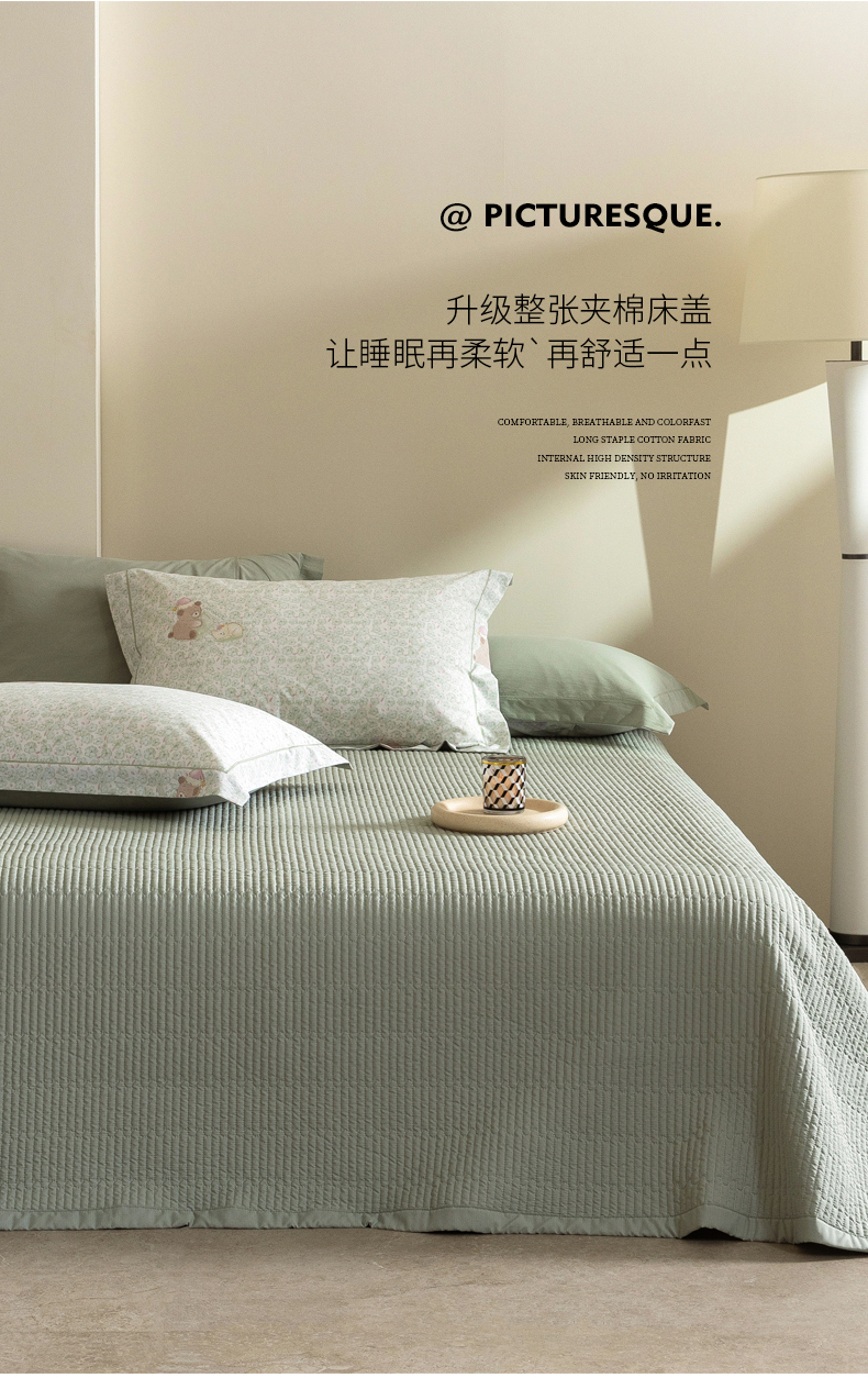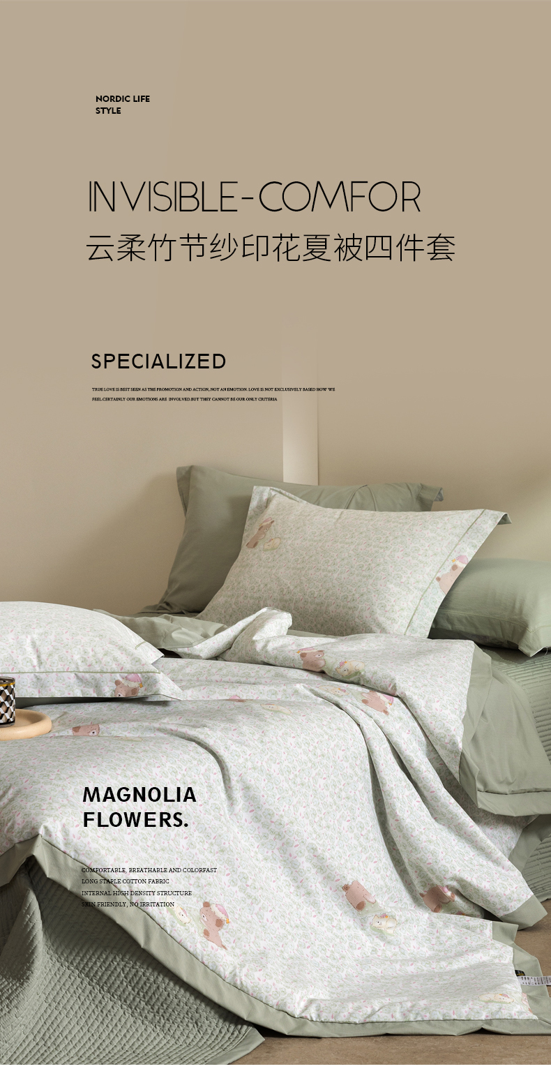 • 91家纺网 家纺一手货源 找家纺 立奥被业 2026新品冰丝棉夏被四件套竹节纱夏被四件套 熊可可-绿