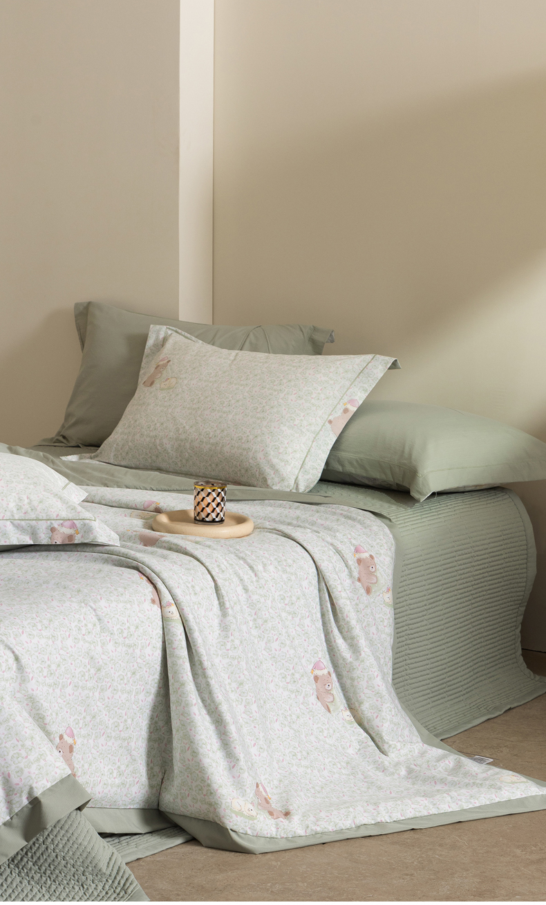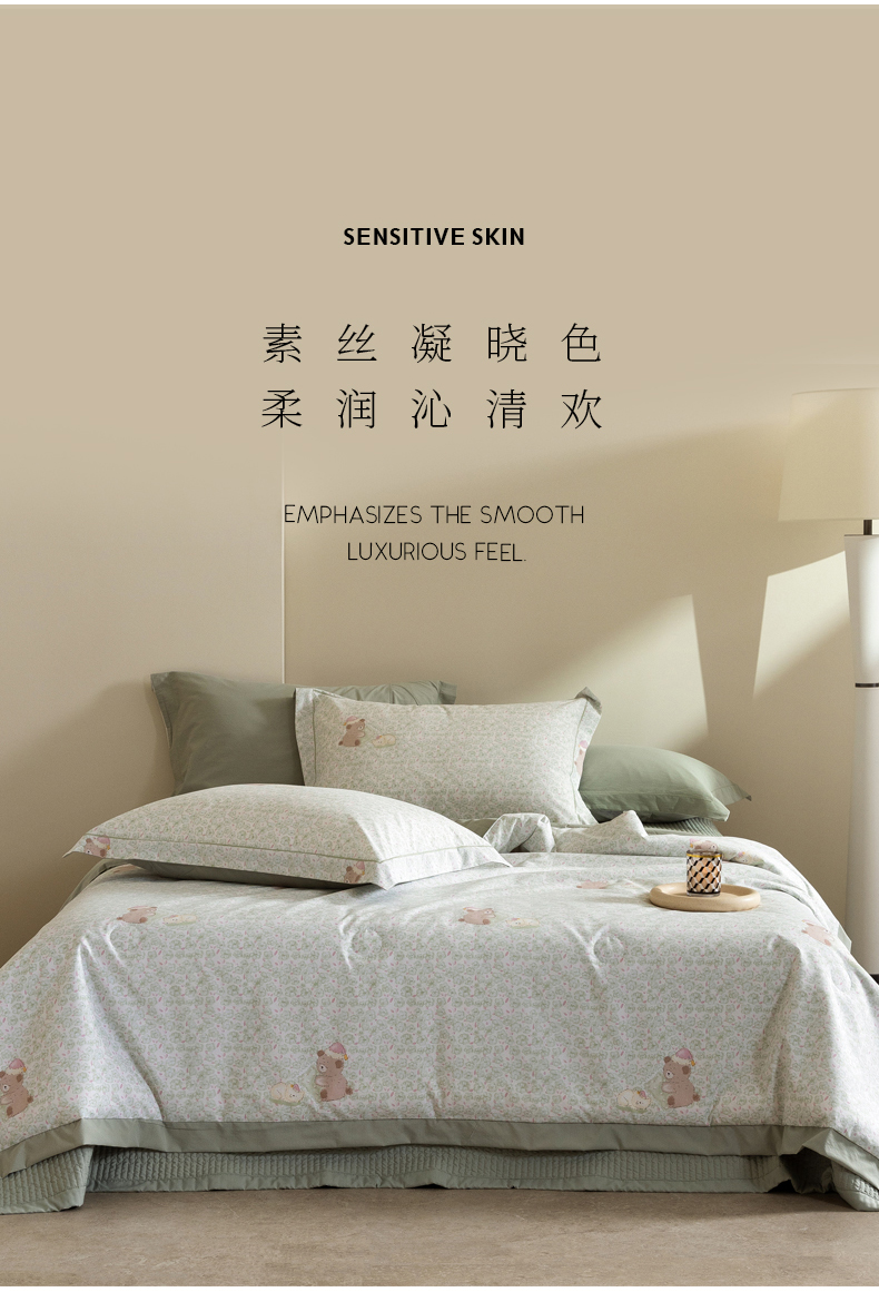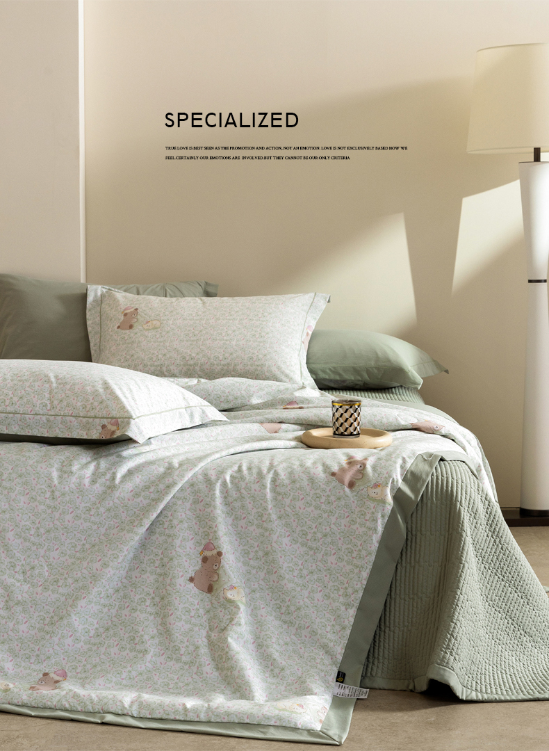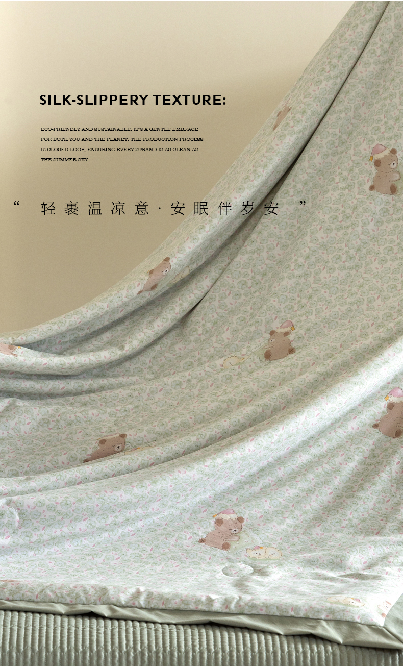 当前位置: 91家纺网 > 商品网购 > 被子 > 夏被 > 立奥被业 2026新品冰丝棉夏被四件套竹节纱夏被四件套 熊可可-绿