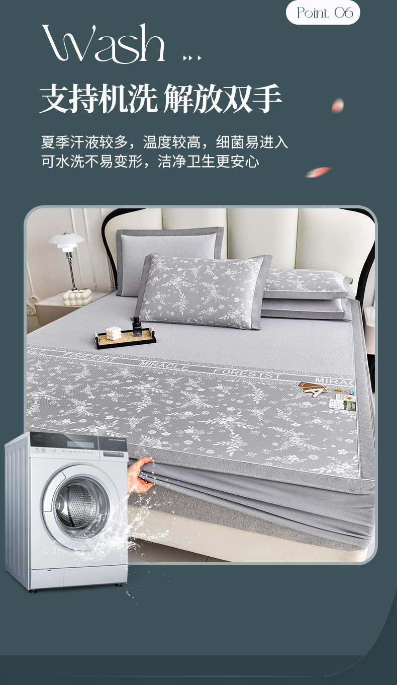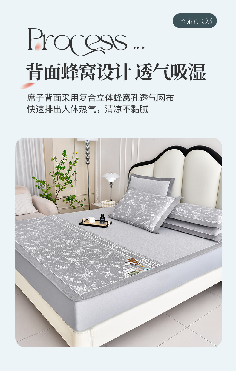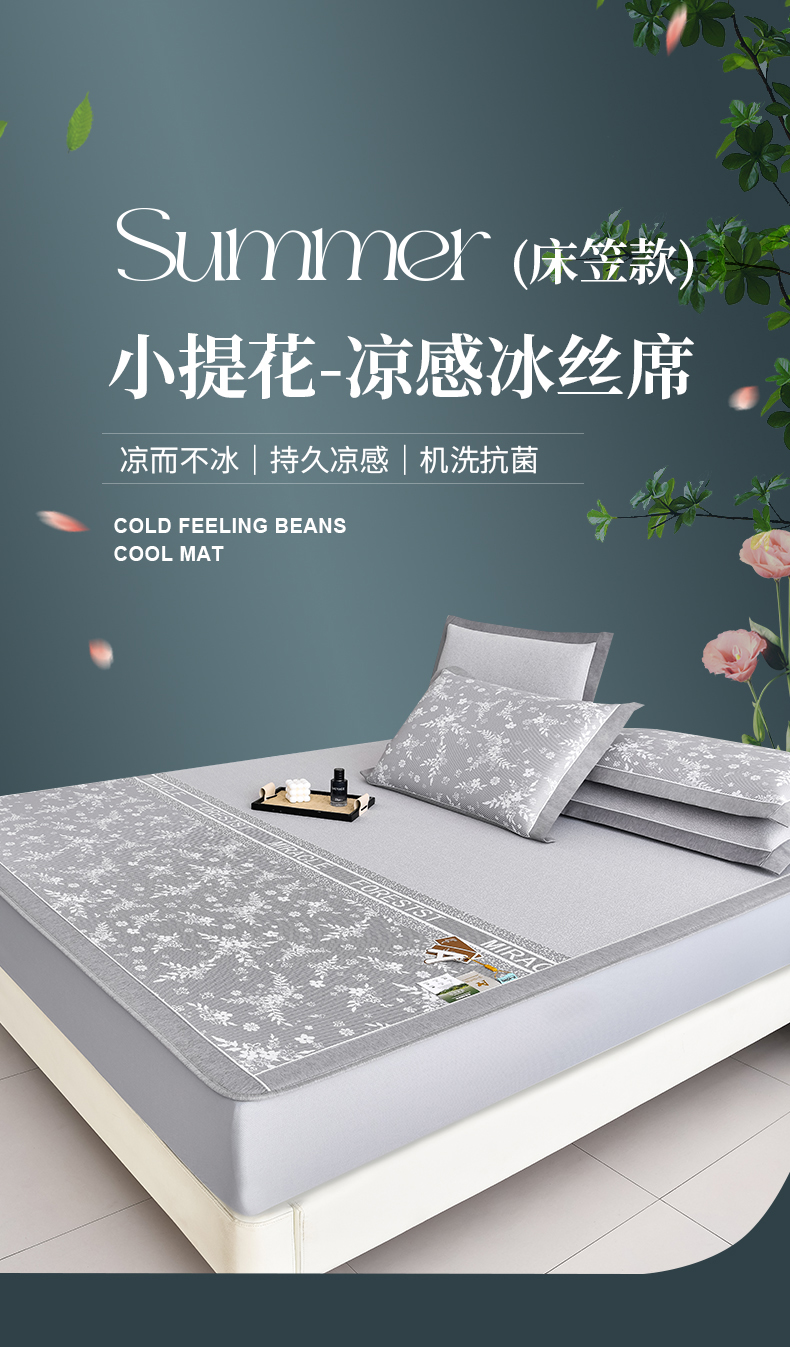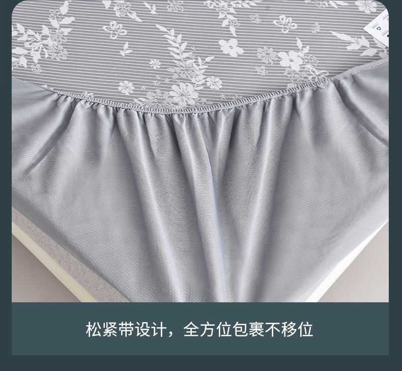 (总)小牛席业 2026春夏新款PE琉璃叶语提花凉感冰丝席席子-床笠款,蓝色,灰色,粉色,香槟