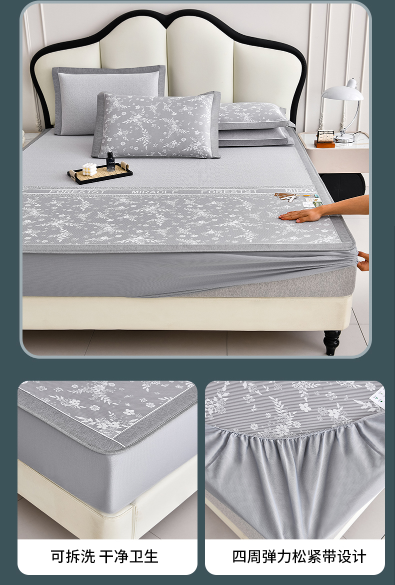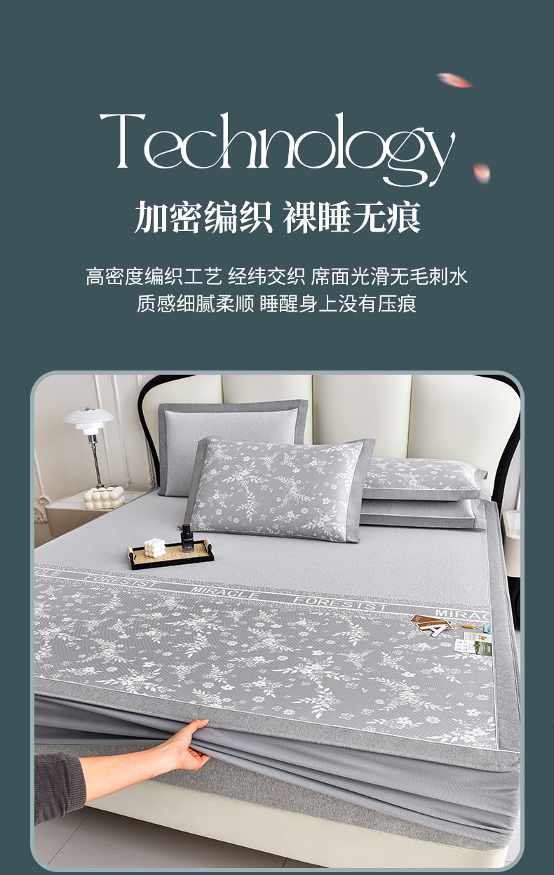 商品名称:小牛席业 2026新款半定位小提花小提花凉感冰丝席系列(床笠款)凉席藤席冰藤双面席冰丝席竹席凉席空调席草席三件 灰色