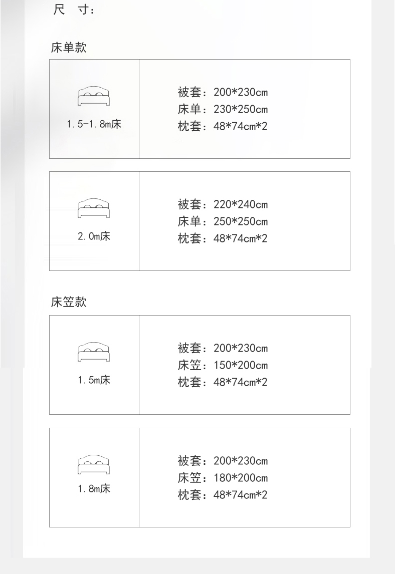 【床笠款】1.8四件套-被套200x230 | ¥135.00 |
