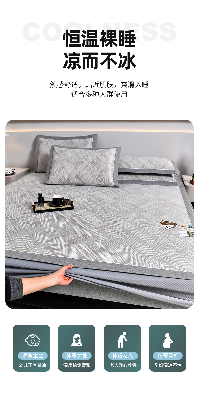 (总)小牛席业 2026春夏新款轻奢半定位凉感冰丝席凉席席子系列床笠款,轻奢半定位-粉色 床笠款,轻奢半定位-灰色 床笠款,轻奢半定位-蓝色 床笠款,轻奢半定位-抹茶 床笠款,轻奢半定位-香槟 床笠款