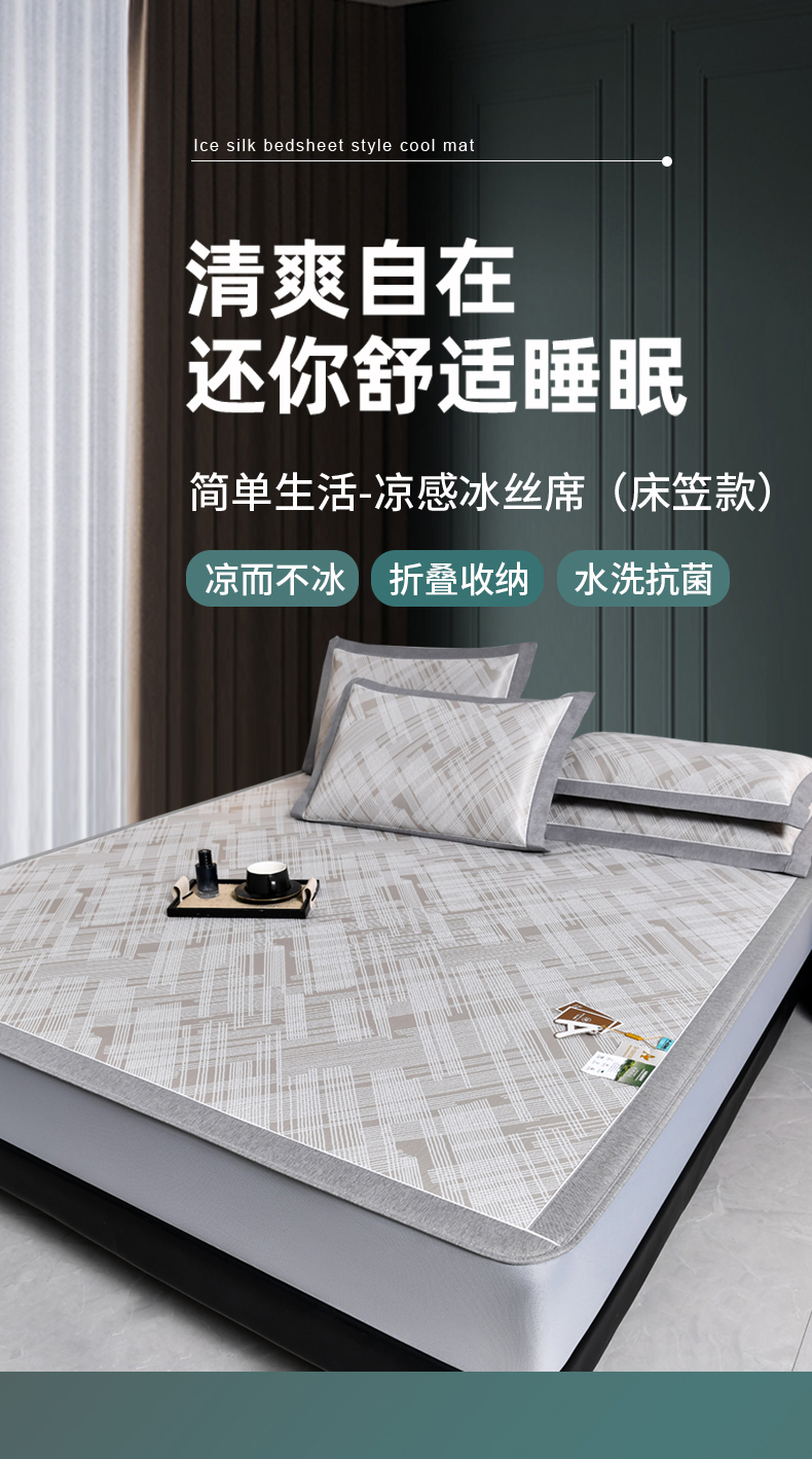 小牛席业 2026新款清凉冰丝席凉席席子系列(床笠款)-简单生活 简单生活-香槟