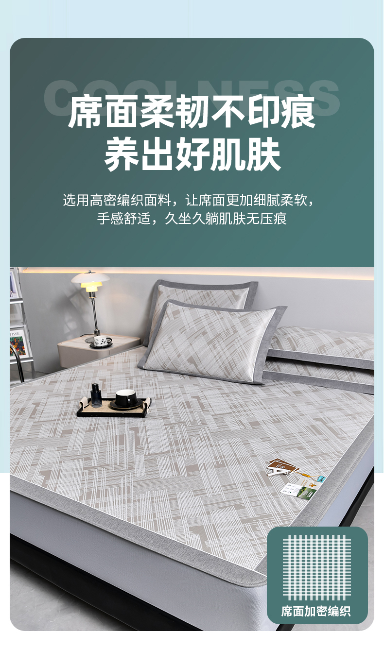 (总)2023新款超精密冰丝席-小斜纹系列-床笠款藤席凉席竹席,粉色,蓝色,绿色,银灰