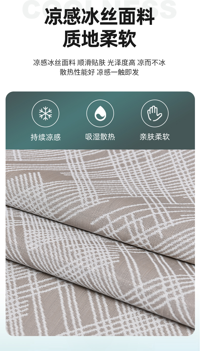 (总)小牛席业 2026新款半定位大提花凉感冰丝席(床笠款)凉席竹席藤席冰藤席乳胶席豆豆席,灰色,粉色,蓝色,香槟