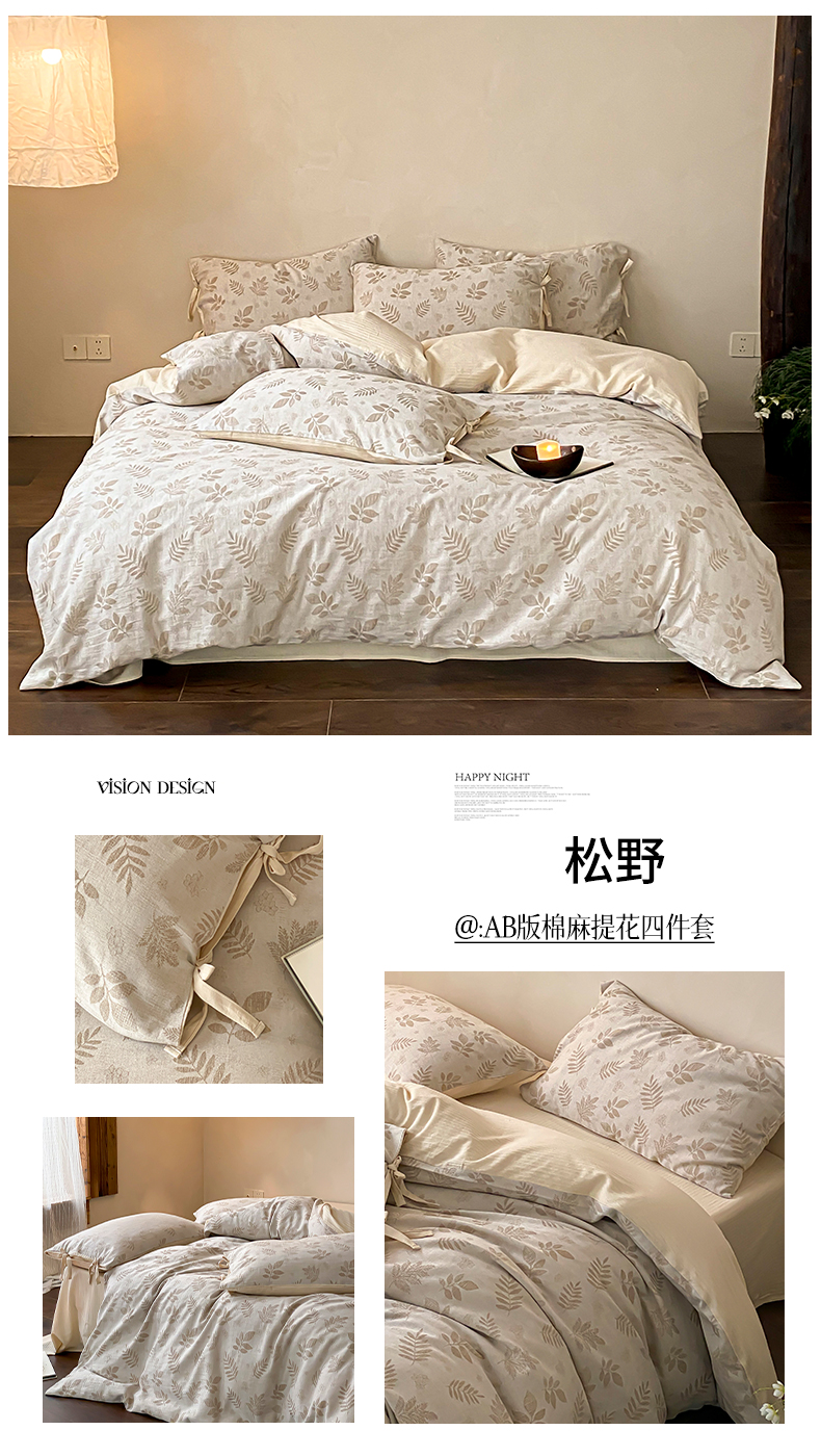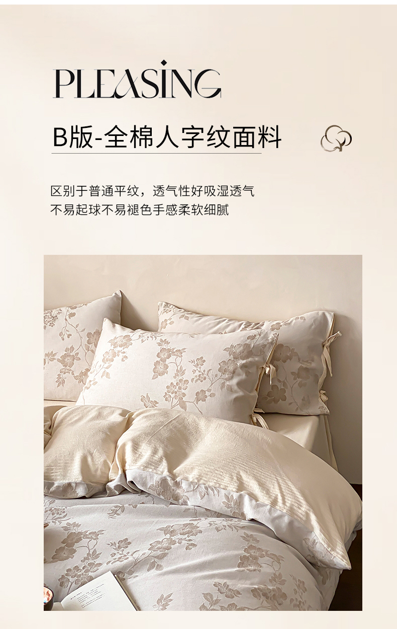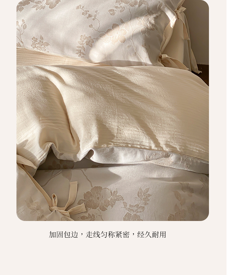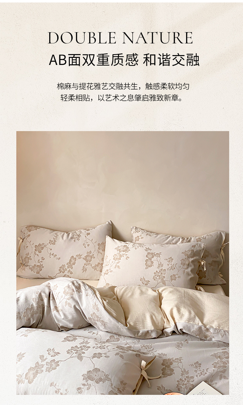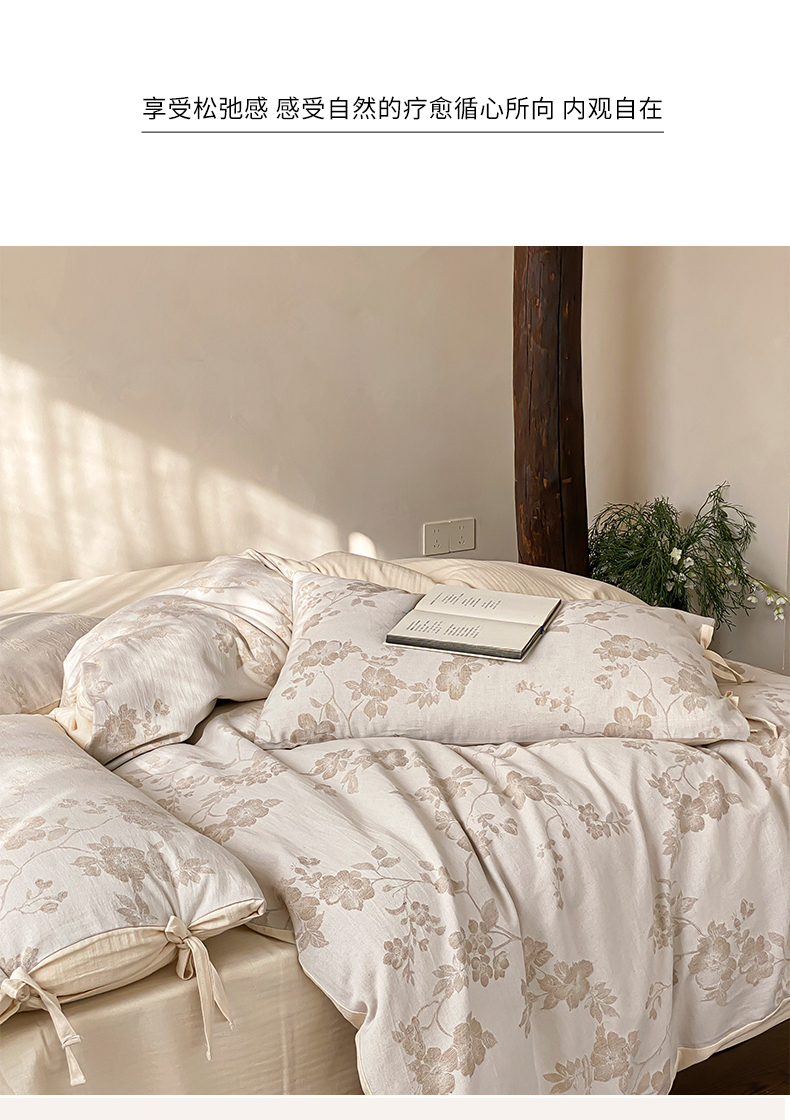 当前位置: 91家纺网 > 商品网购 > 床品套件 > 四件套 > 全棉普通四件套 > 宜代光年 2026新款棉麻人字纹提花四件套系列 蔷薇