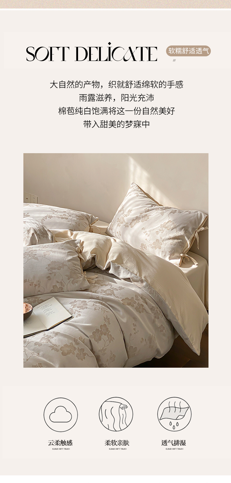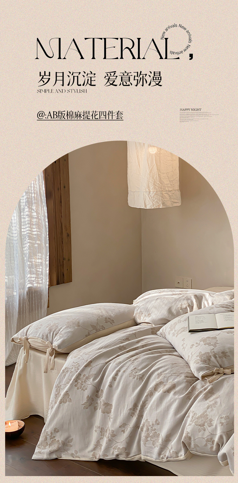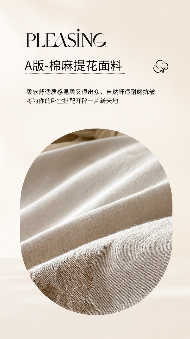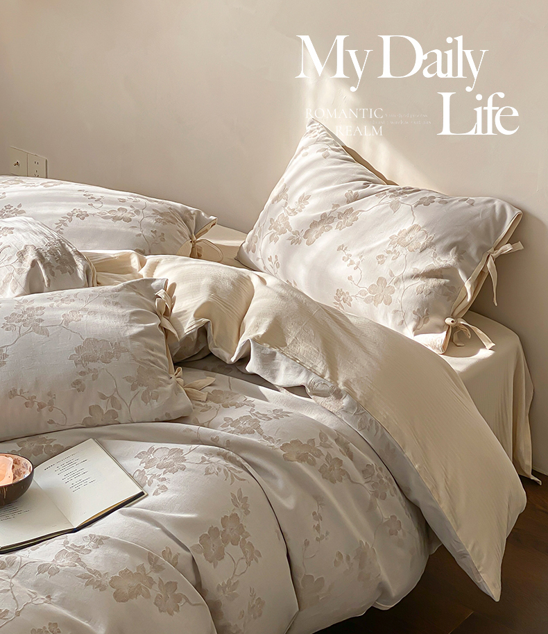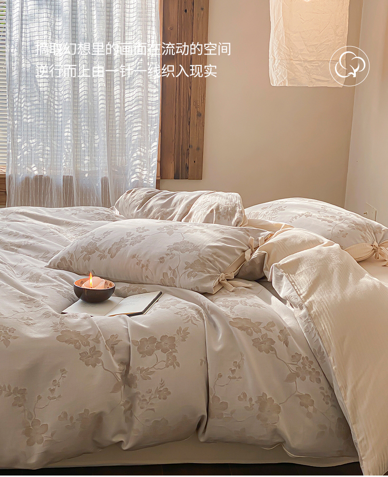 当前位置: 91家纺网 > 商品网购 > 床品套件 > 四件套 > 全棉普通四件套 > 宜代光年 2026新款棉麻人字纹提花四件套系列 蔷薇