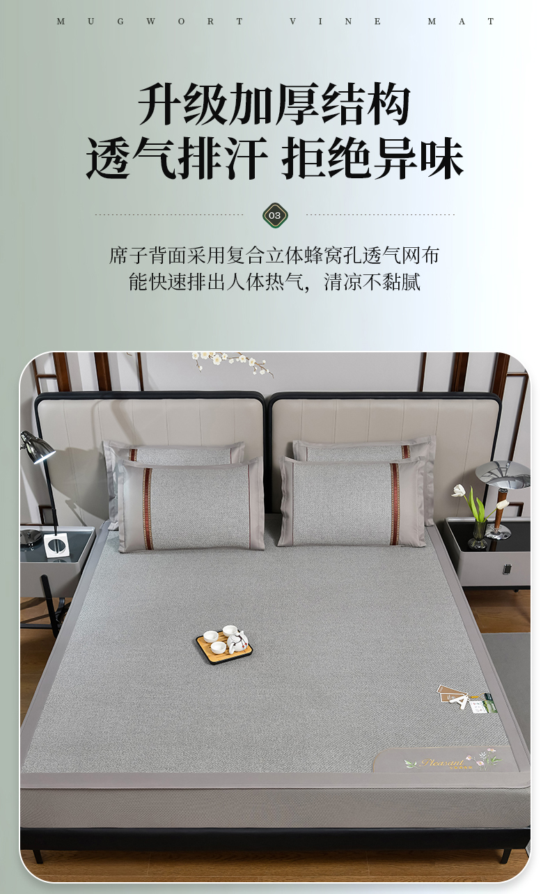 当前位置: 91家纺网 > 商品网购 > 床上用品 > 凉席 > 其他凉席 > 小牛席业 2026新款加厚款-艾草清新养生席(床笠款) 加厚款-艾草清香养生(床笠款)-灰色