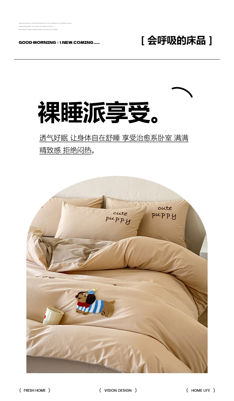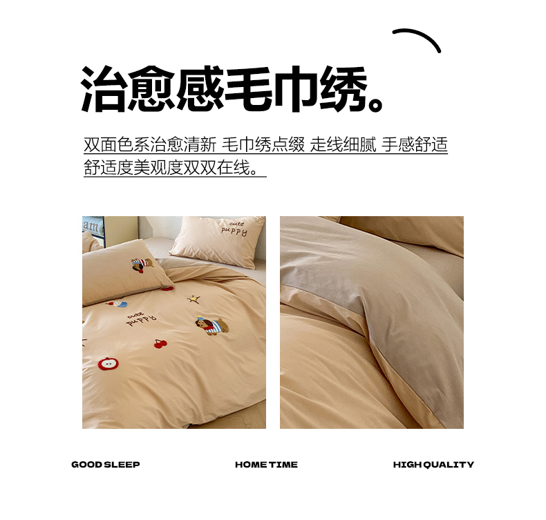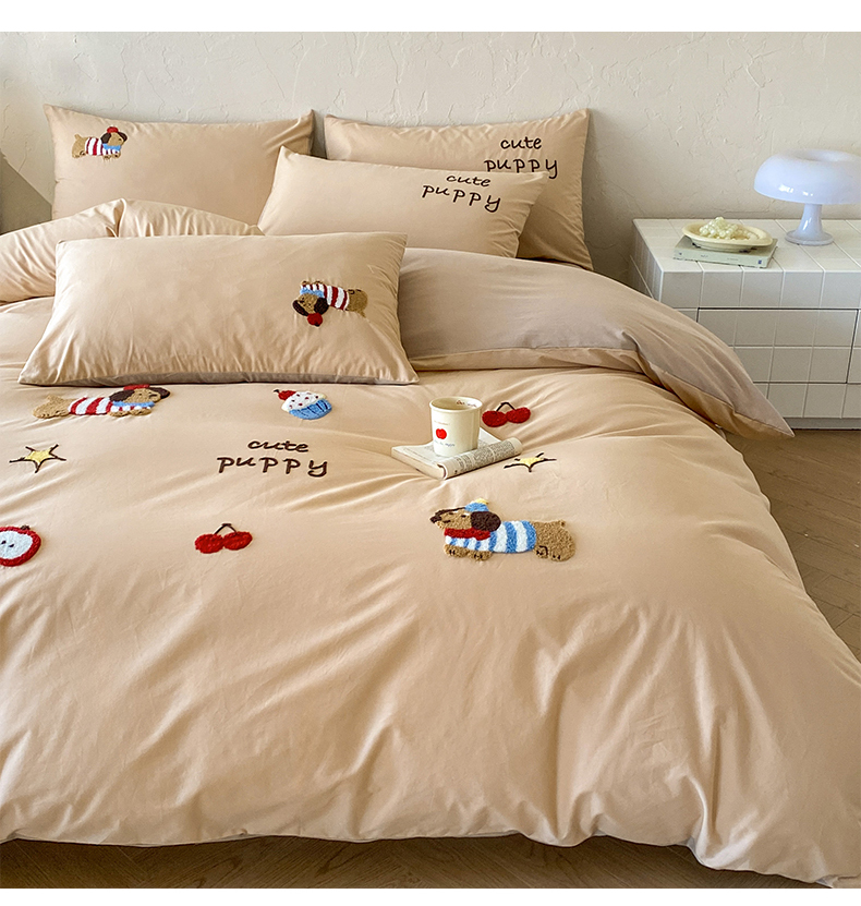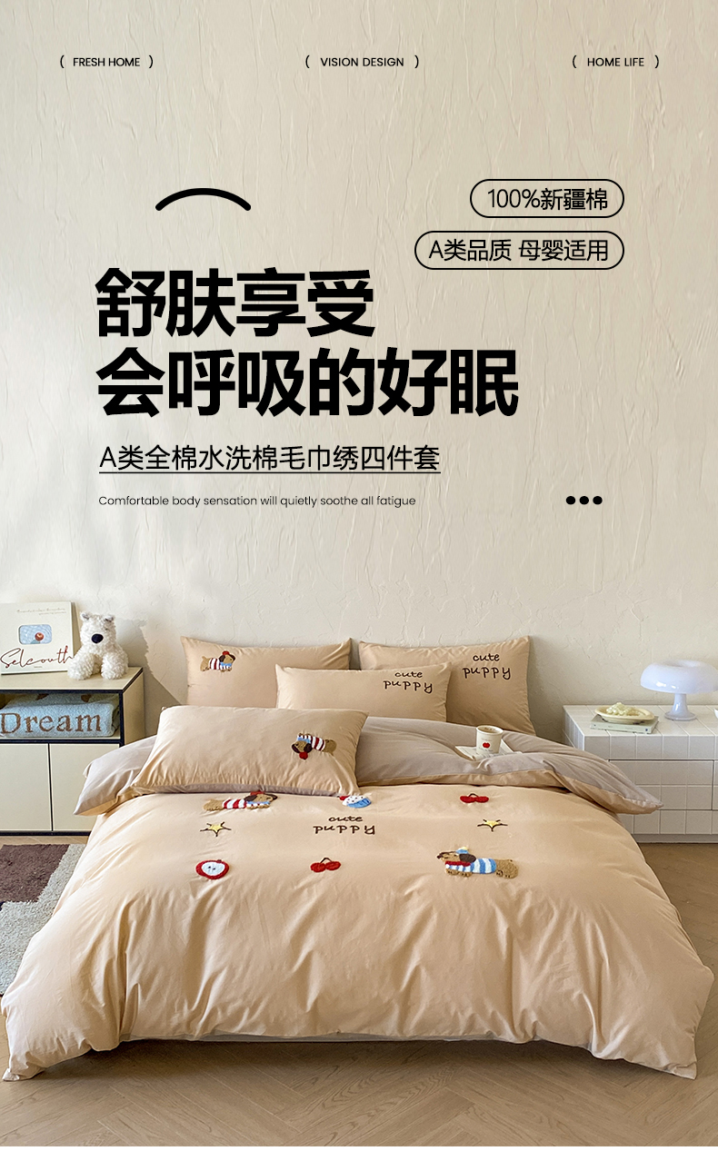 当前位置: 91家纺网 > 商品网购 > 床品套件 > 四件套 > 全棉普通四件套 > 拼社家纺 2026新款A类母婴级全棉纯棉水洗棉四件套毛巾绣纯棉四件套床上用品提供买家秀 萌宠派对-卡其