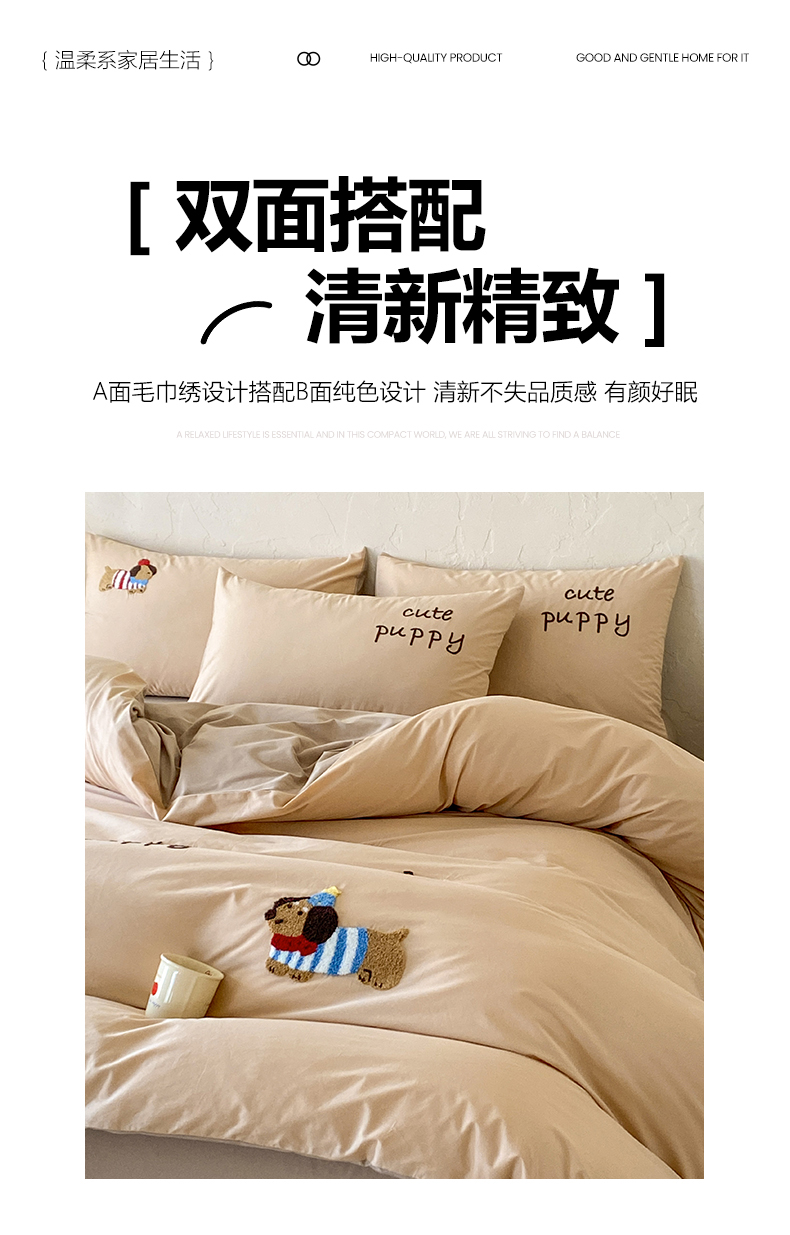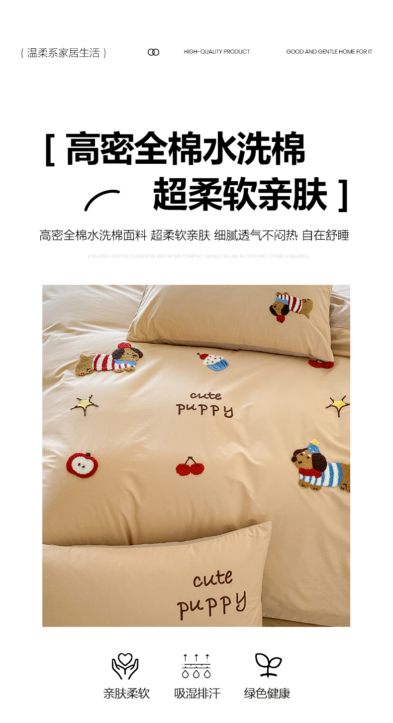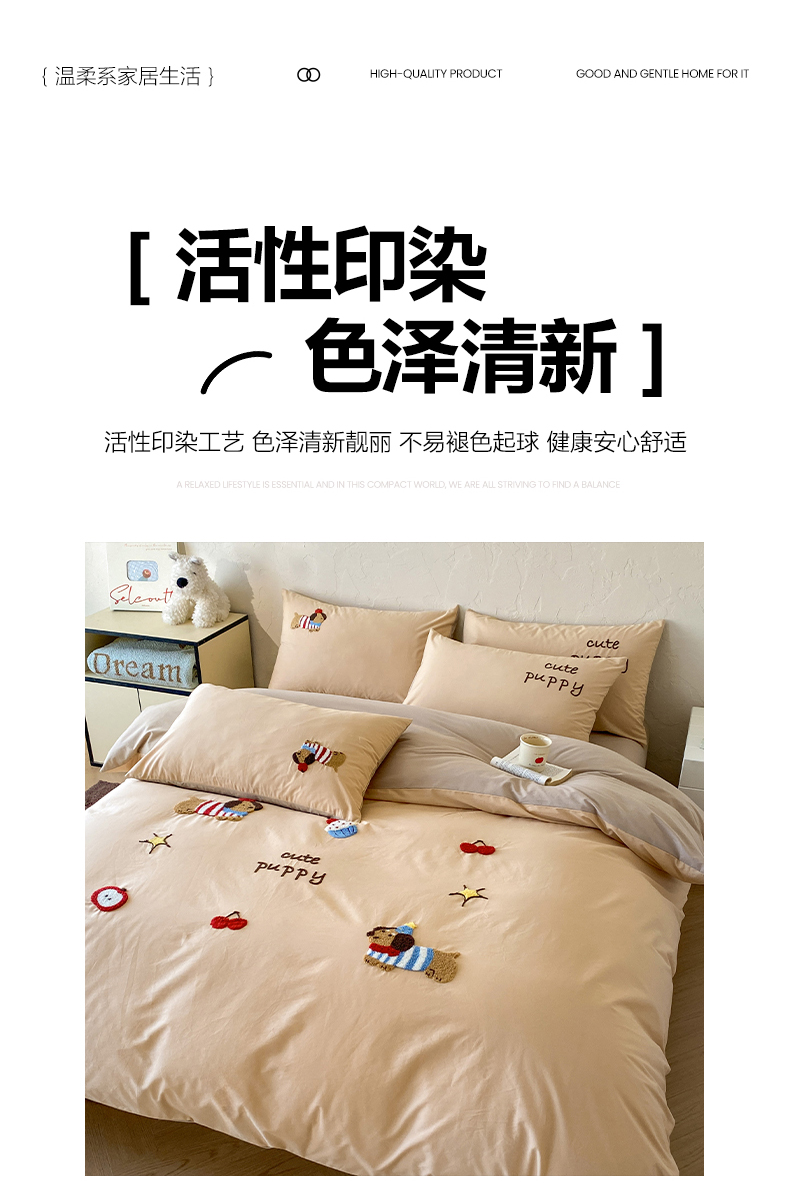 当前位置: 91家纺网 > 商品网购 > 床品套件 > 四件套 > 全棉普通四件套 > 拼社家纺 2026新款A类母婴级全棉纯棉水洗棉四件套毛巾绣纯棉四件套床上用品提供买家秀 萌宠派对-卡其