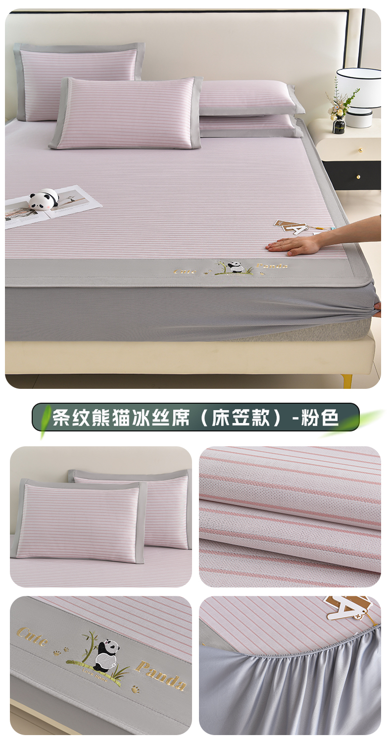 商品名称:小牛席业 2026新款条纹爱家熊猫冰丝席(床笠款)藤席冰藤席冰丝席可机洗凉感冰丝席豆豆席PE霸王 咖色