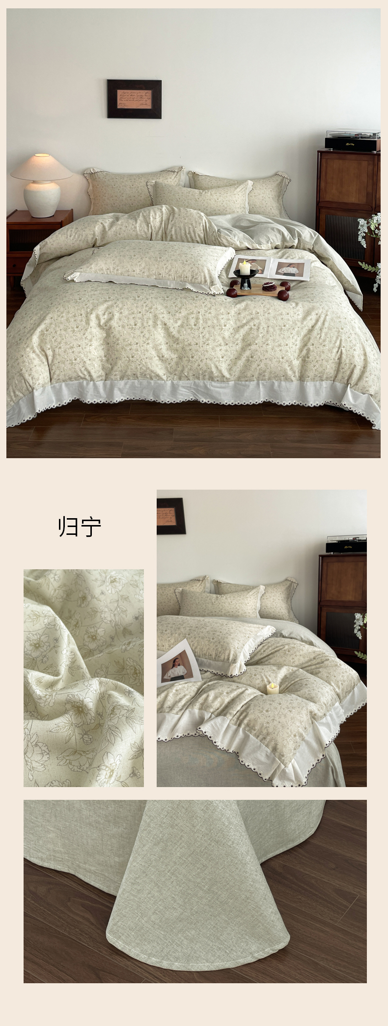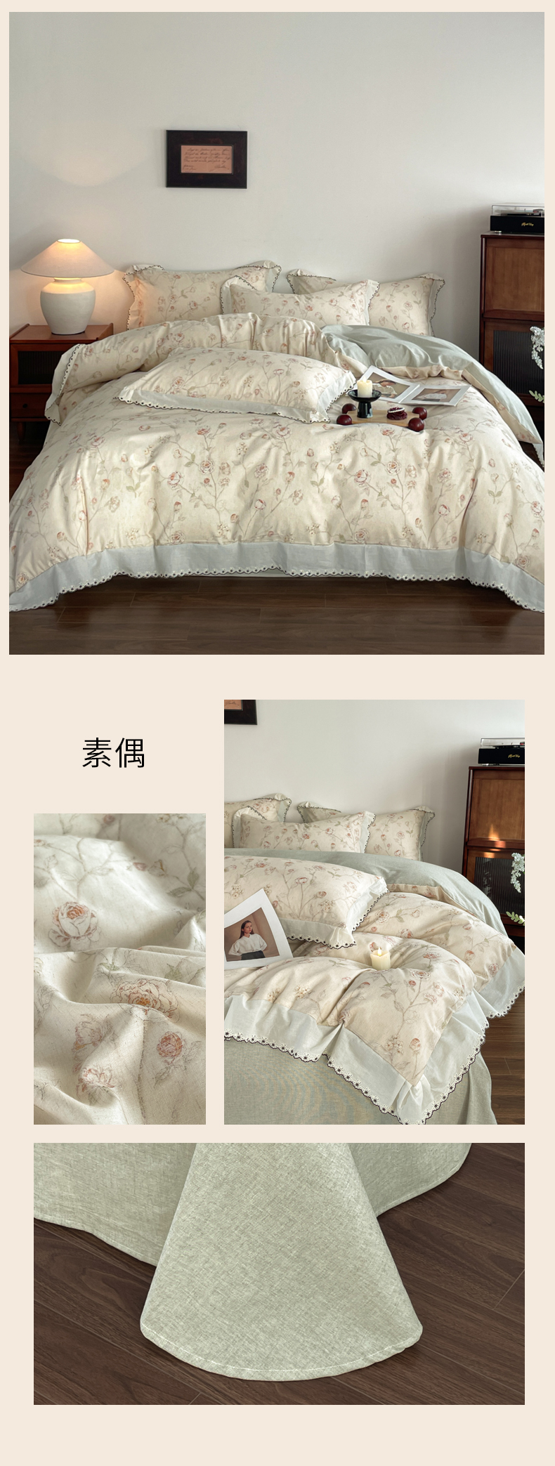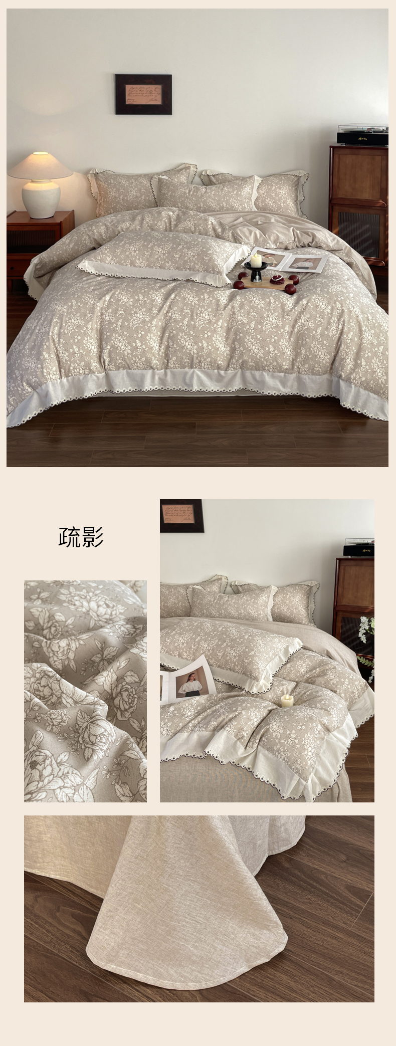 当前位置: 91家纺网 > 商品网购 > 床品套件 > 四件套 > 夏被四件套 > 慕晨 2026新款天丝莱赛尔棉麻数码印色织花边夏被四件套高级田园美式直播热款 疏影