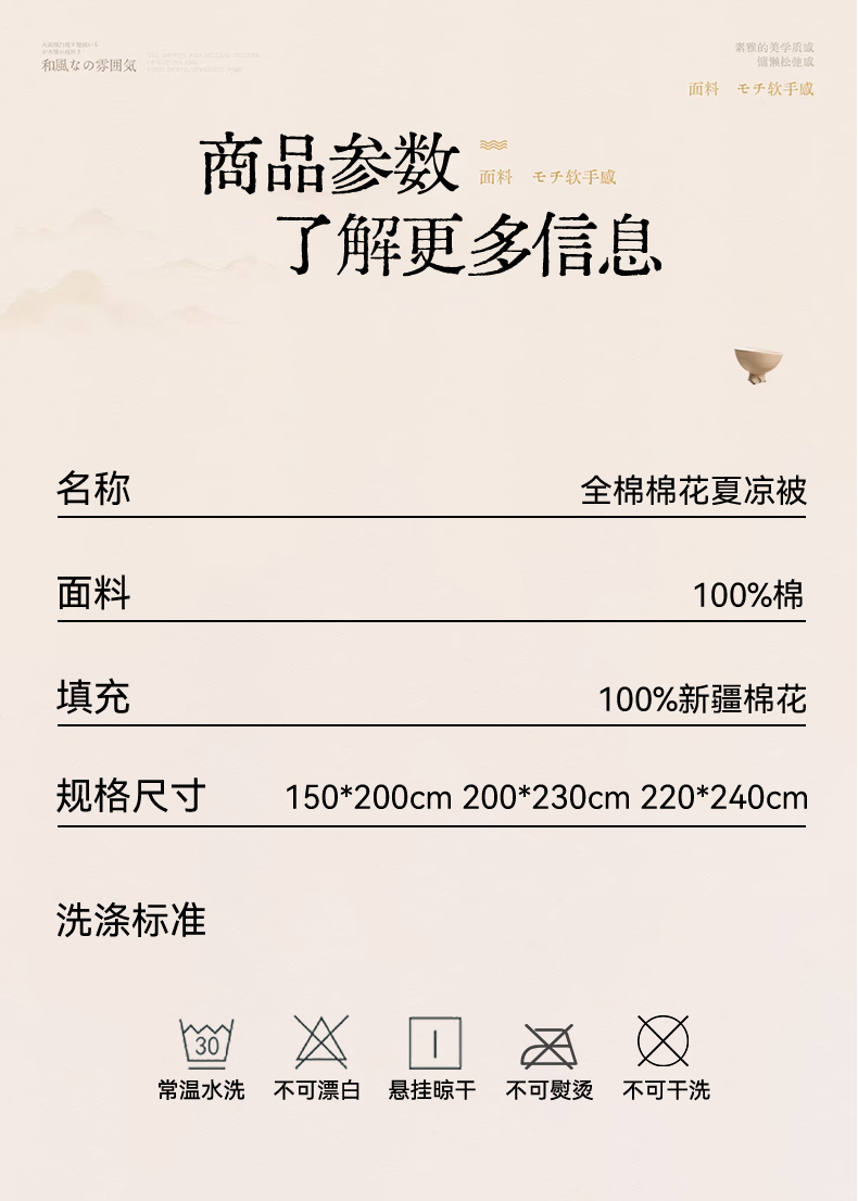 • 适用季节: 空调被/夏凉被