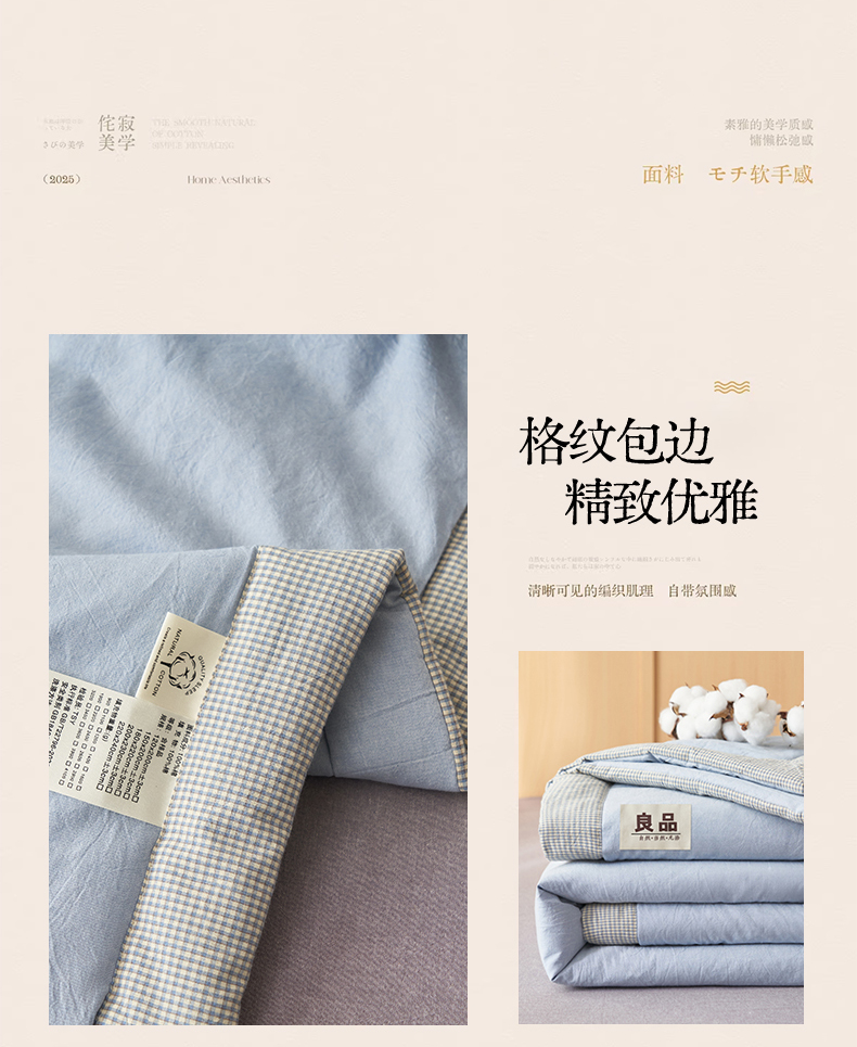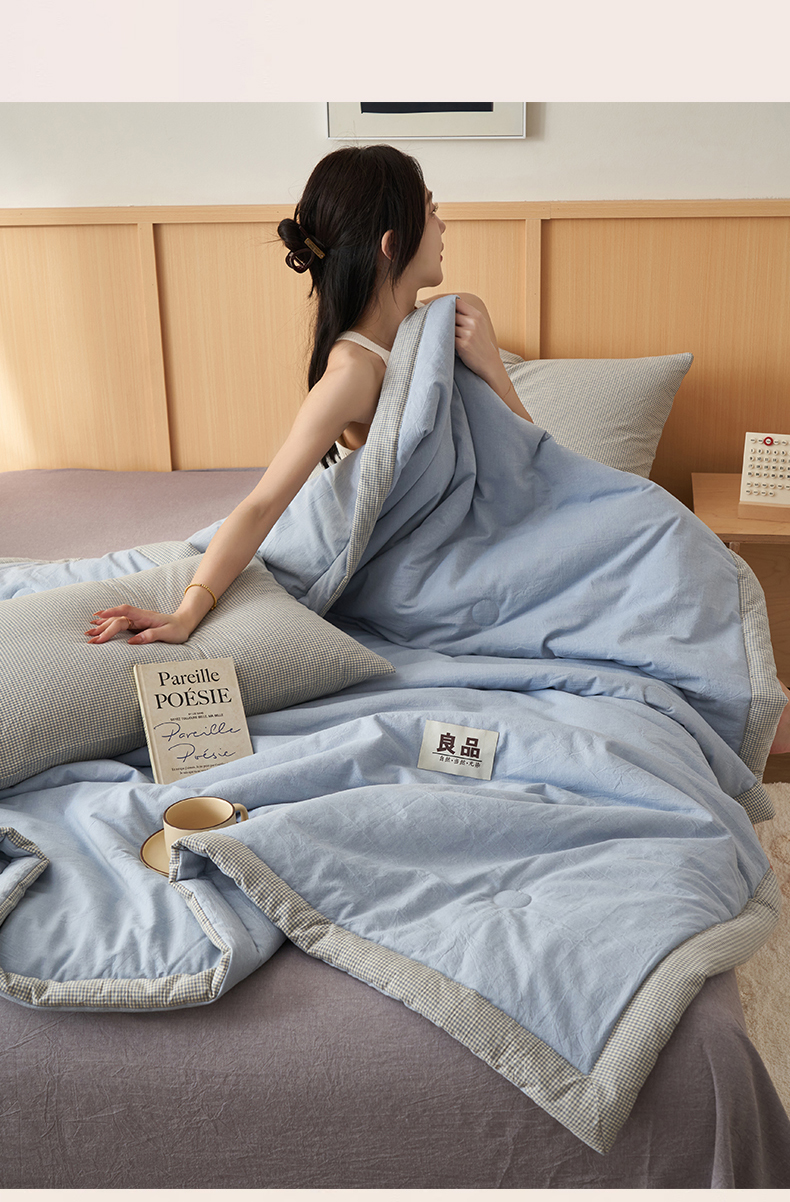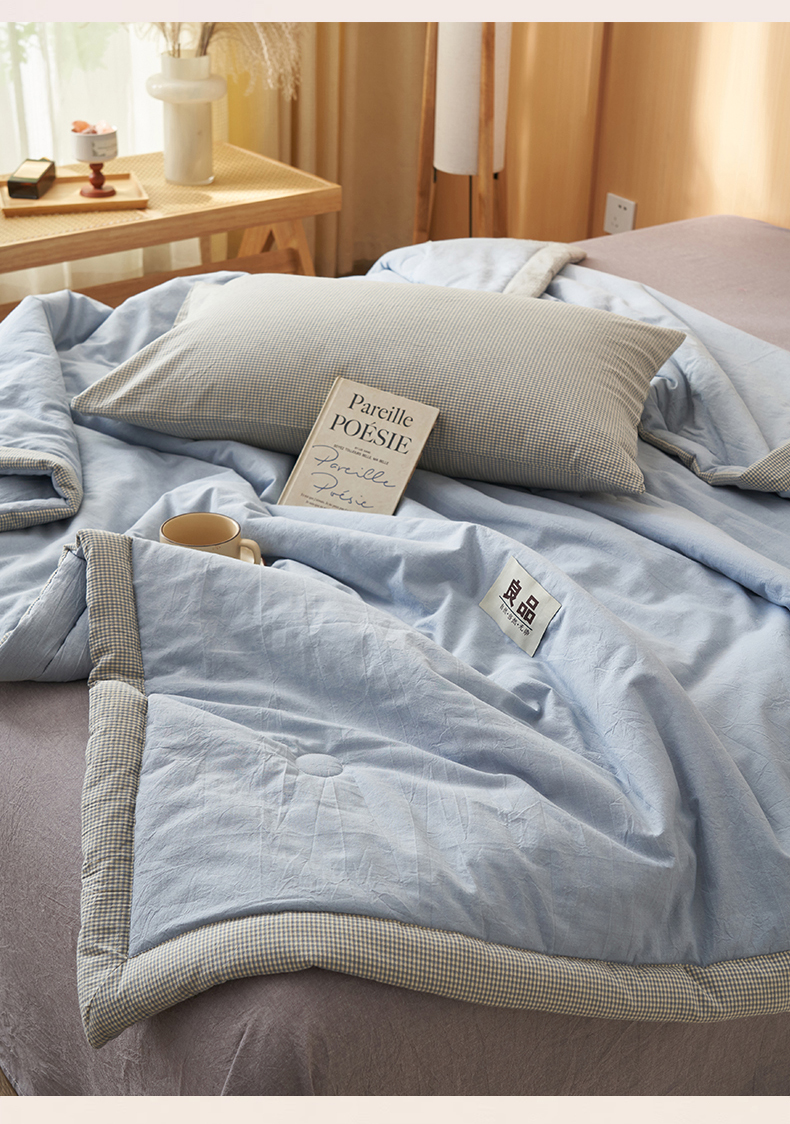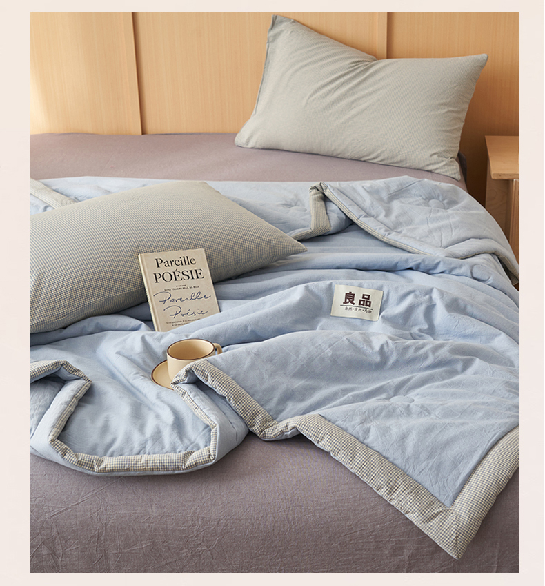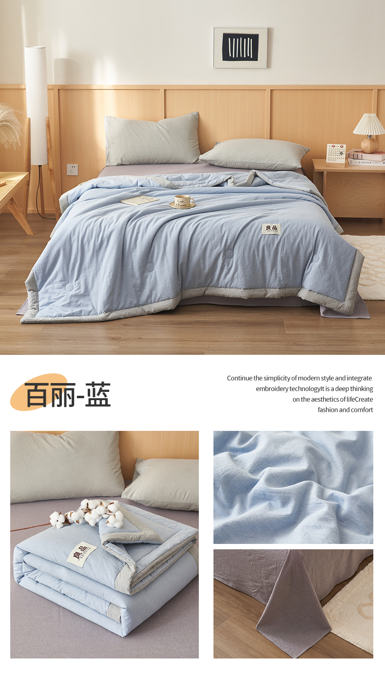 恬思语家纺 2026春夏新款里外全棉纯棉纯色棉花夏被-百丽系列 百丽-蓝