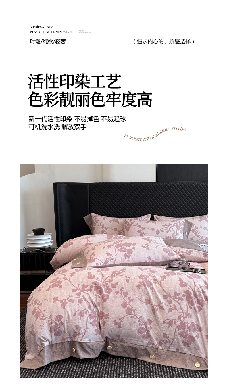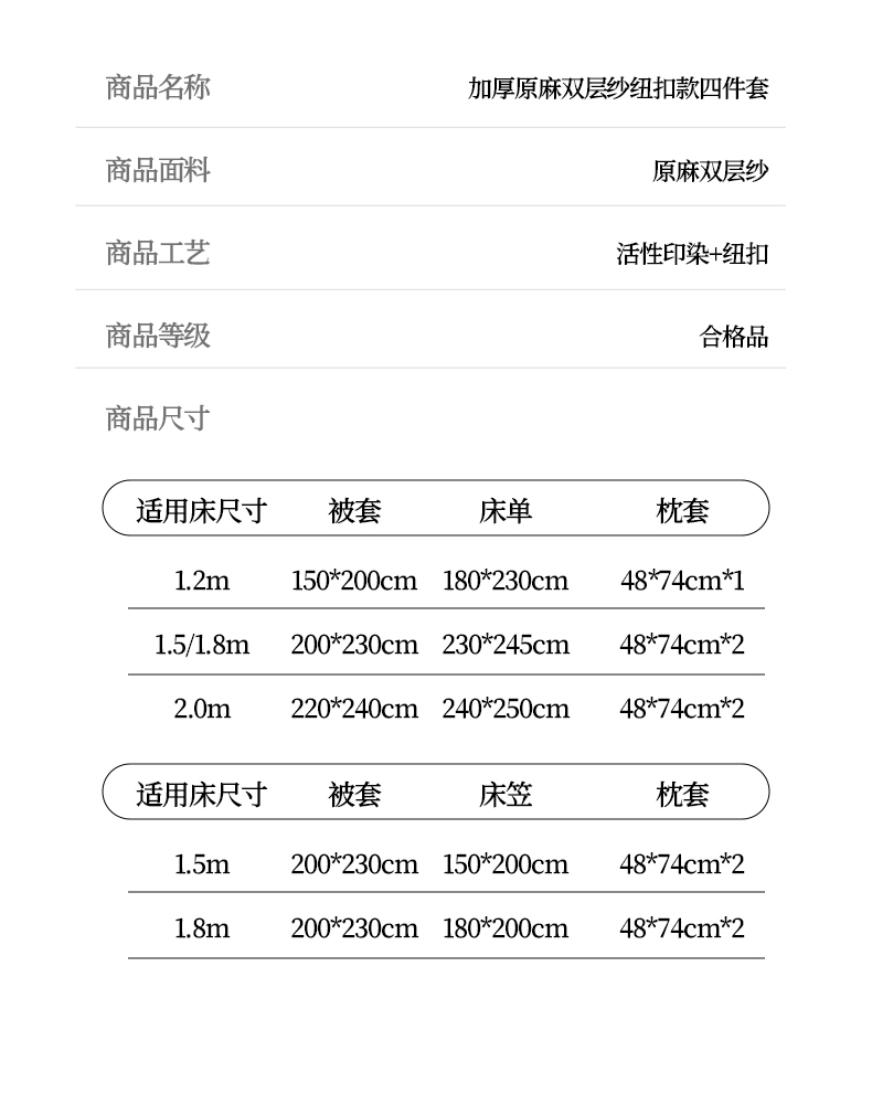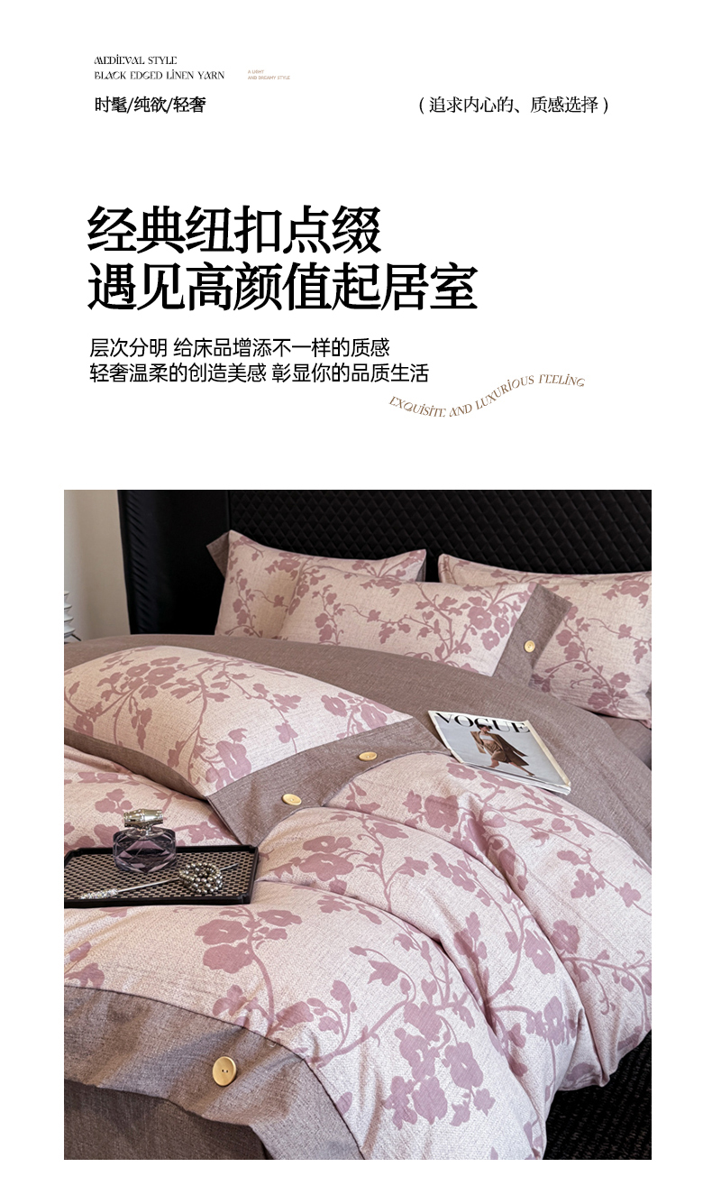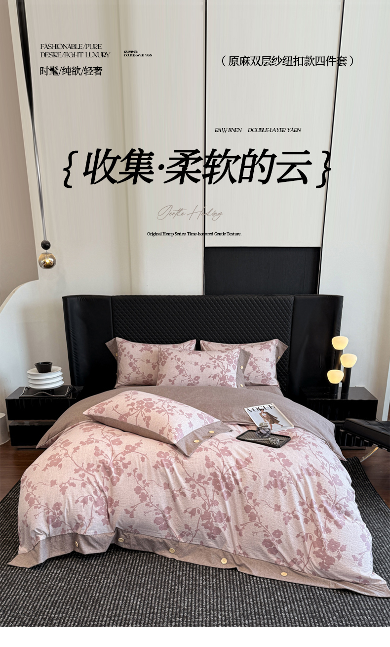 当前位置: 91家纺网 > 商品网购 > 床品套件 > 四件套 > 其它四件套 > 晚爱家纺(原晚安家居) 2026新款加厚双层纱原麻纽扣款四件套 繁花粉