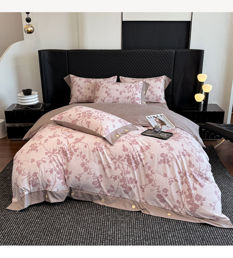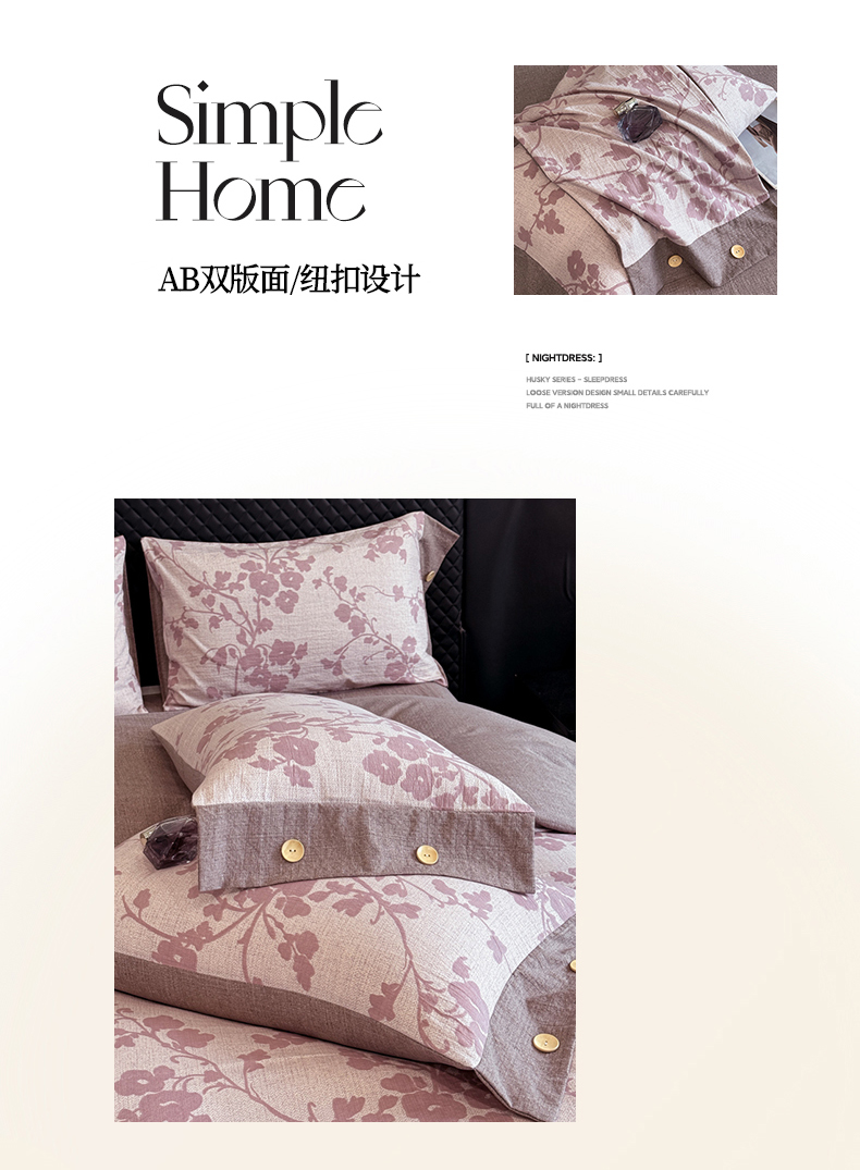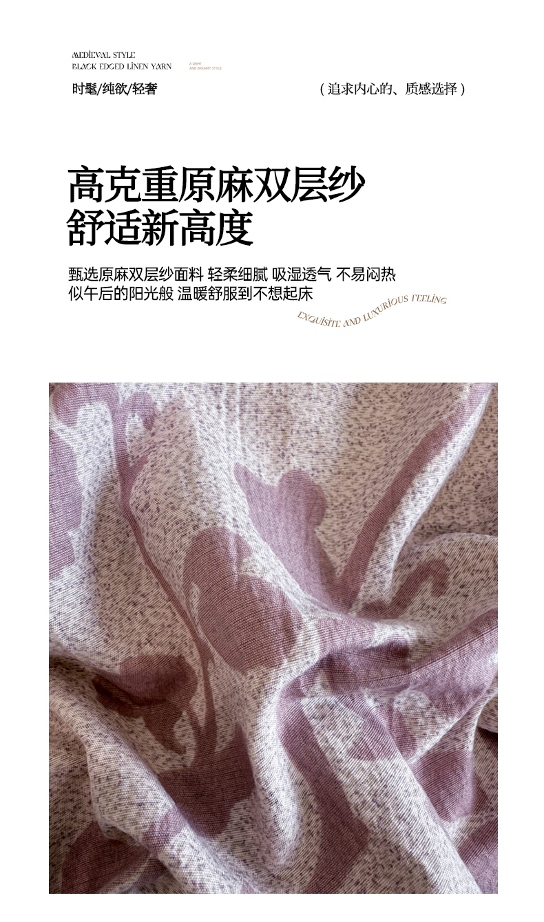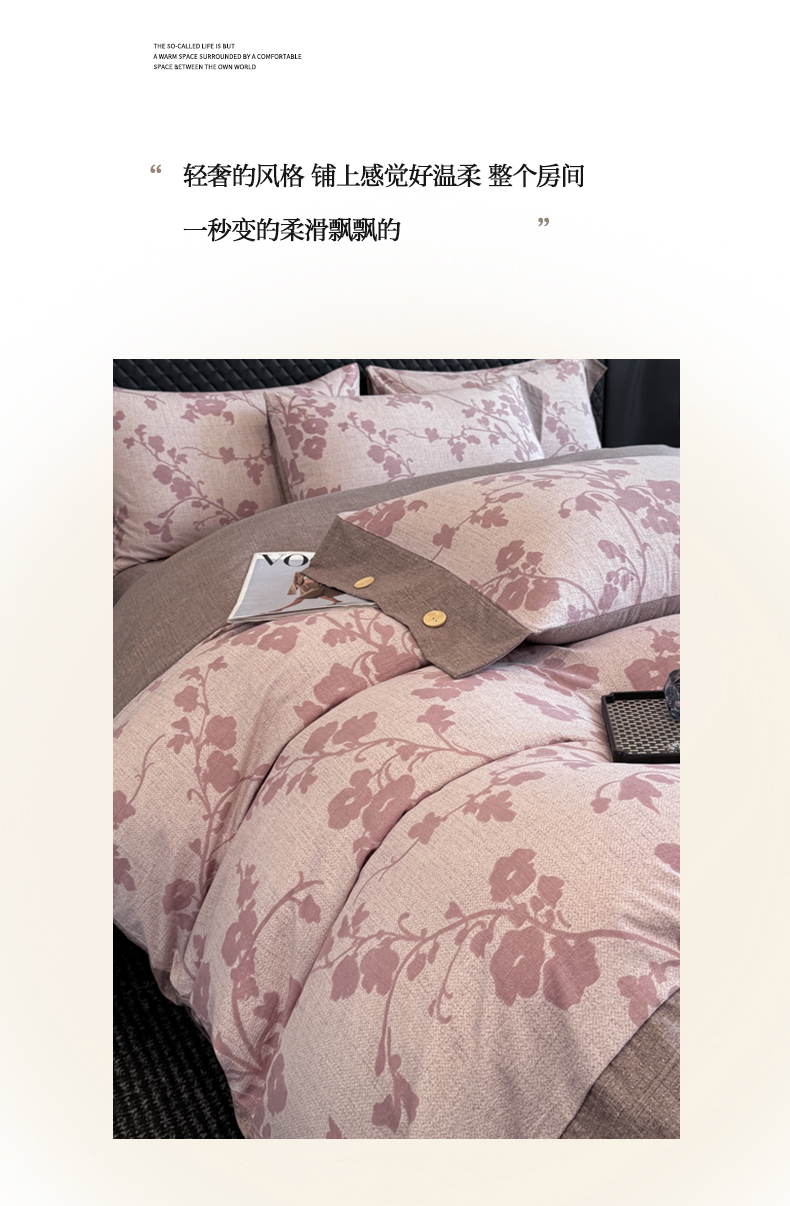 当前位置: 91家纺网 > 商品网购 > 床品套件 > 四件套 > 其它四件套 > 晚爱家纺(原晚安家居) 2026新款加厚双层纱原麻纽扣款四件套 繁花粉