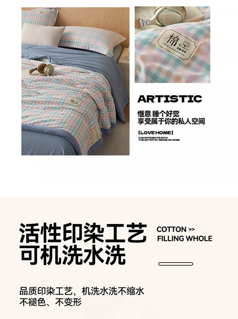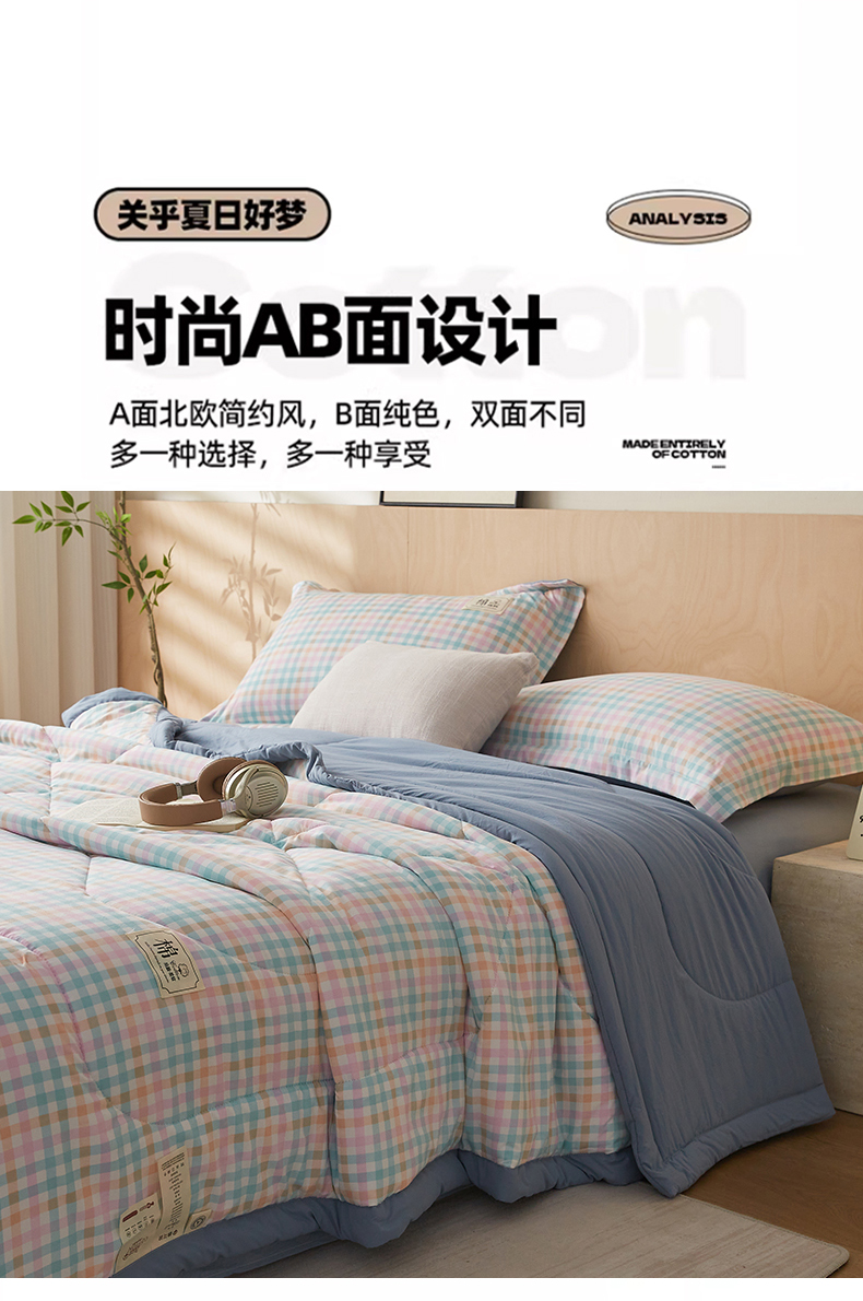 (总)帕芬鸟家纺 2026新款100%棉花夏凉被空调被夏被四件套-格子系列,冰激凌格,格雅灰,格雅绿,格韵粉,格韵蓝黄,蓝灰格,蓝小格,绿小格,米小格