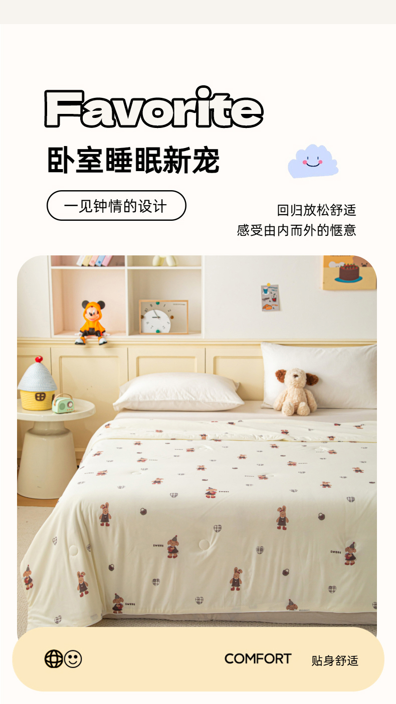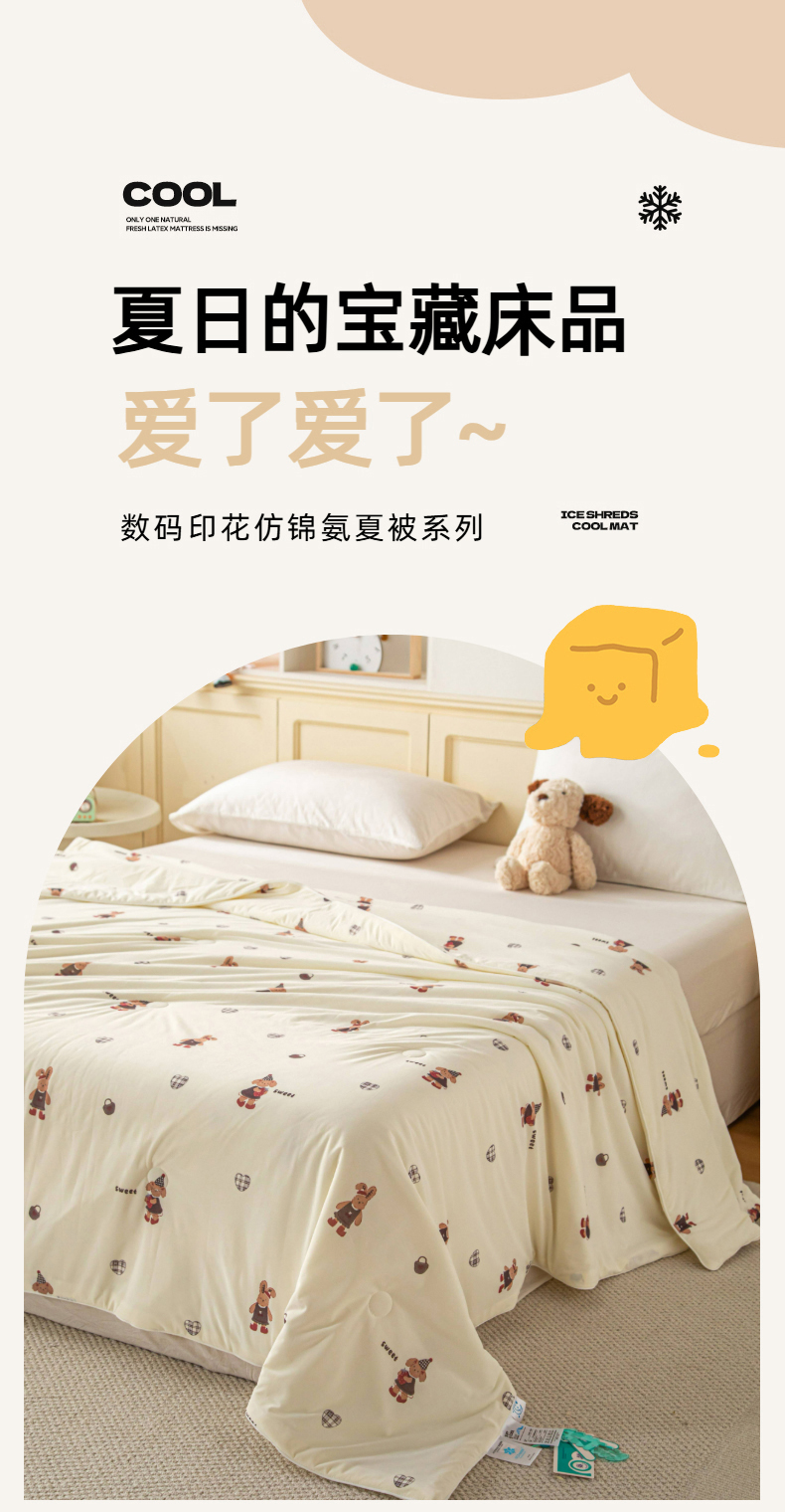 (总)亿莱鑫 2026春夏新款卡通印花仿锦氨夏被夏凉被空调被,彩绘小熊,格纹小象,蘑菇熊屋,树屋熊趣,甜品聚会,星梦萌友,星星小象,熊仔面包店