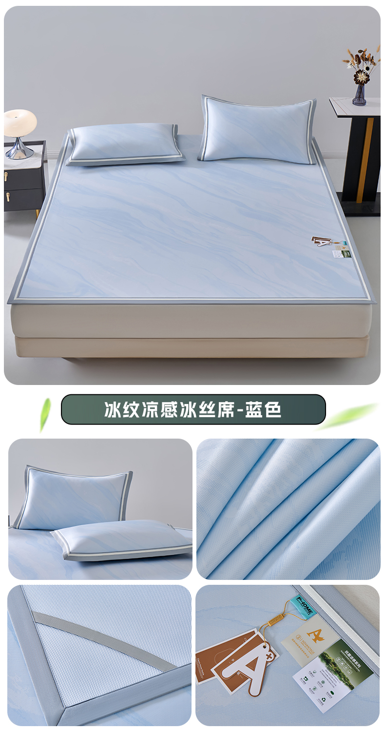 (总)2023新款超精密冰丝席-小斜纹系列-床笠款藤席凉席竹席,粉色,蓝色,绿色,银灰