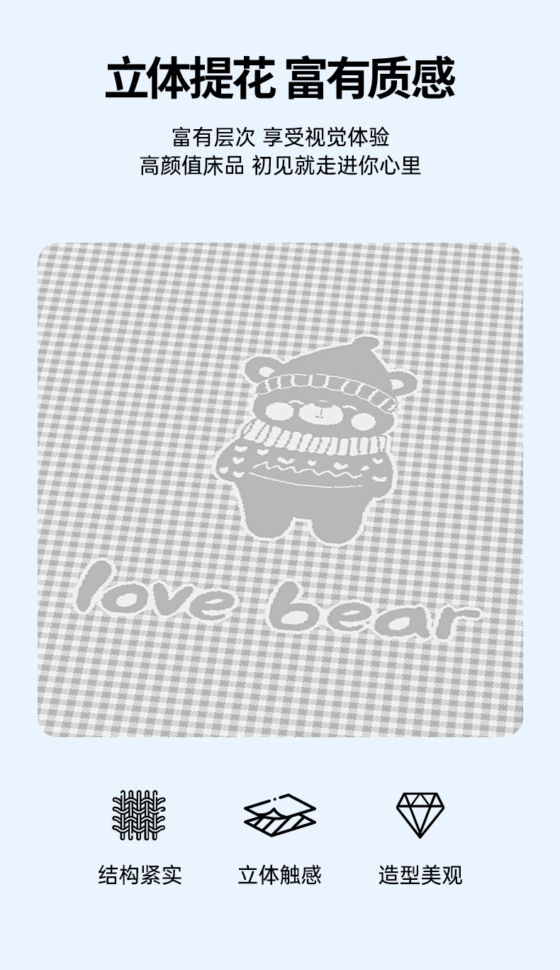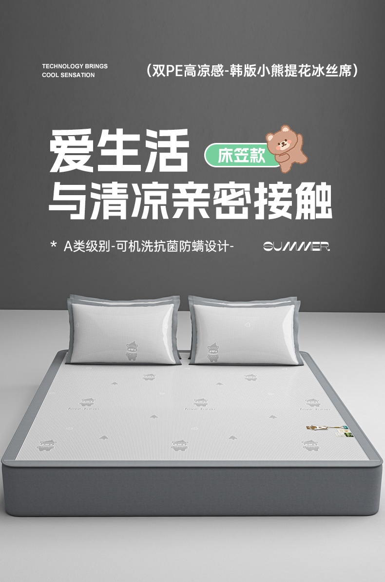 商品名称:小牛席业 2026新款【建模风格】双PE高凉感-韩版小熊提花冰丝席席子凉席-床笠款 香槟