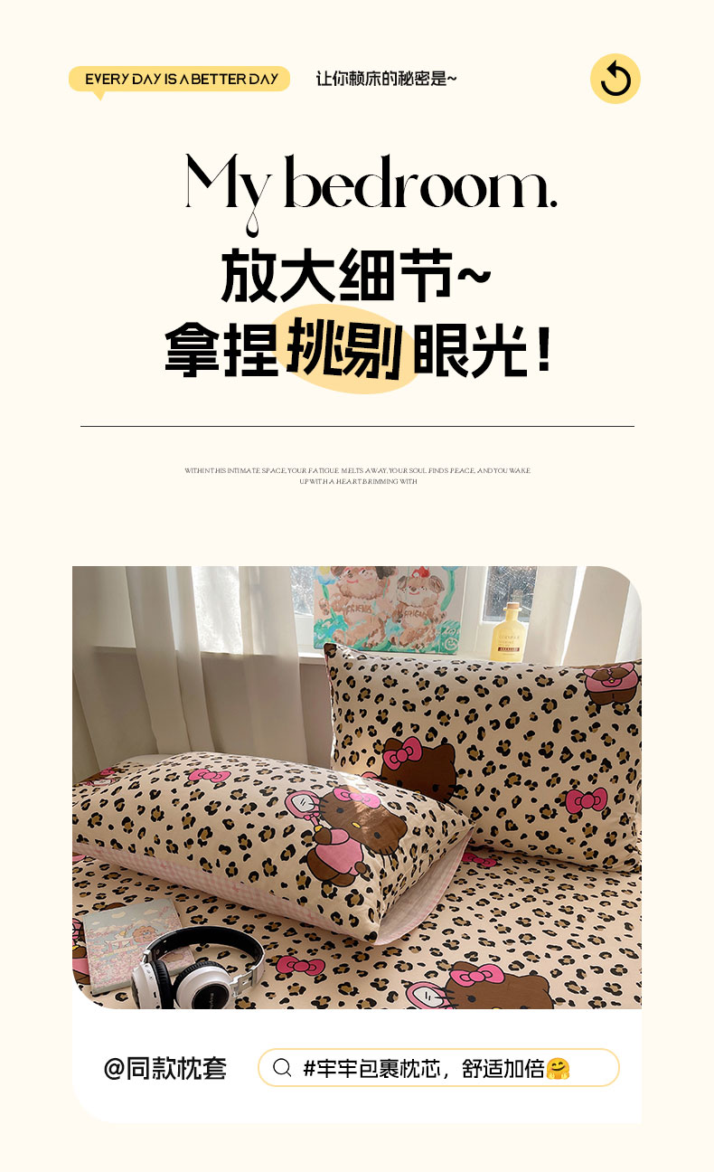 六巷胡同 2026新款40支全棉13070INS卡通全棉单品床单 咖豹纹喵喵