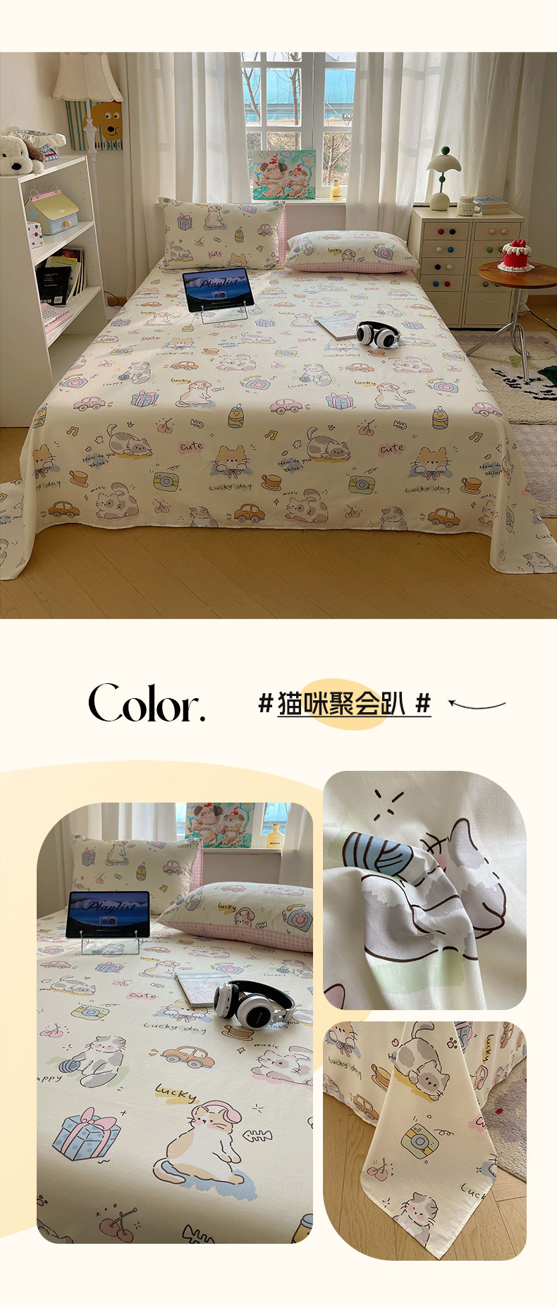 (总)六巷胡同 2026新款40支全棉13070INS卡通全棉单品床单,爱心汉堡喵,豹纹黑皮猫,度假冲浪猫,费尔岛狗狗,粉格趣味犬,狗狗轰趴记,海盐豹纹猫,咖豹纹喵喵,蓝调波点兔,萝莉樱桃猫,猫狗游园会,猫咪聚会趴,汪星人派对,星星萝莉猫,慵懒猫咪崽,组合叠拍图