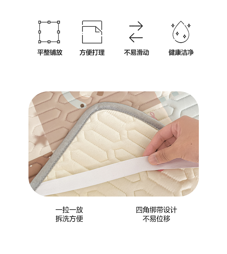 (总)摩妮卡 2026新款水洗棉夹棉防水床褥床垫款三件套,几何-卡其,几何-奶白,几何-浅粉,几何-天蓝