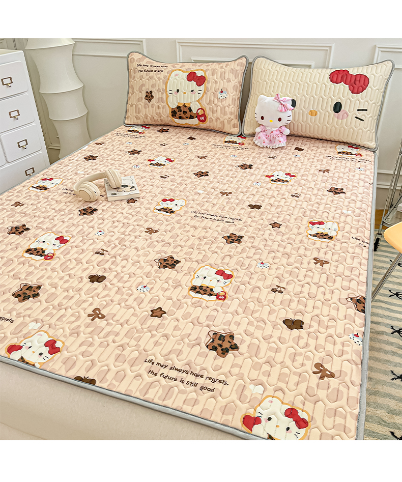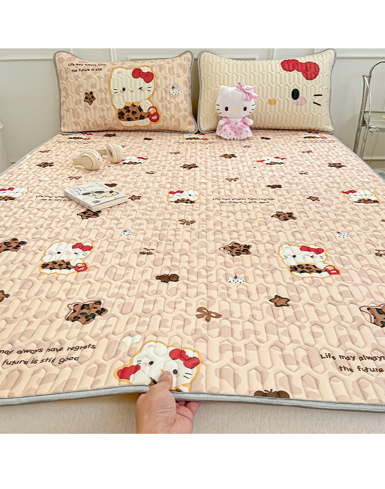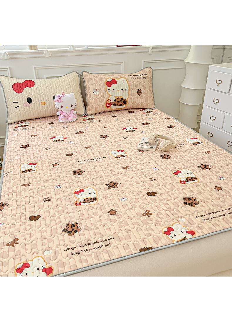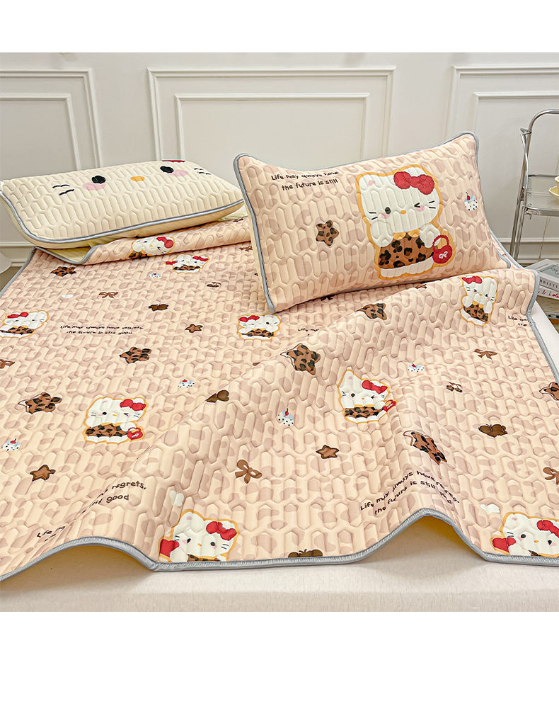 商品名称:摩妮卡 2026新款数码大版小清新乳胶凉席床席款三件套-场景一 趣巧小猫咪-咖