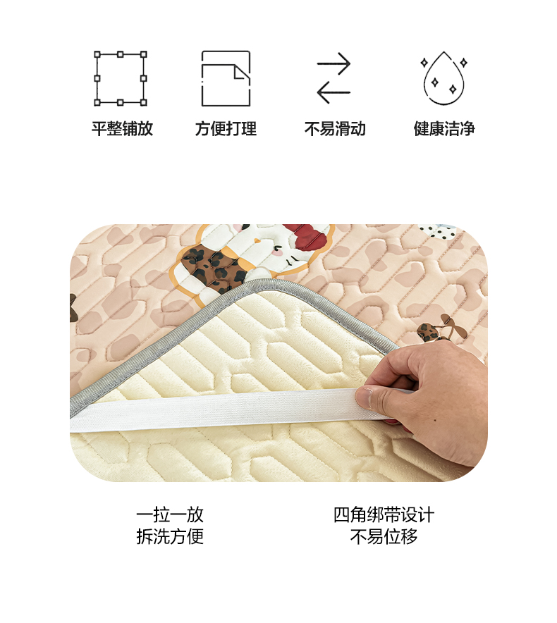 (总)摩妮卡 2026新款水洗棉夹棉防水床褥床垫款三件套,几何-卡其,几何-奶白,几何-浅粉,几何-天蓝
