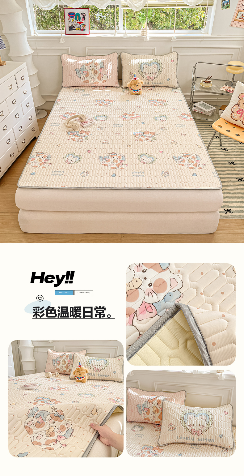 (总)摩妮卡 2026新款水洗棉夹棉防水刺绣爱心床褥床垫款三件套,爱心-奶白,爱心-撑粉,爱心-卡其,爱心-天蓝