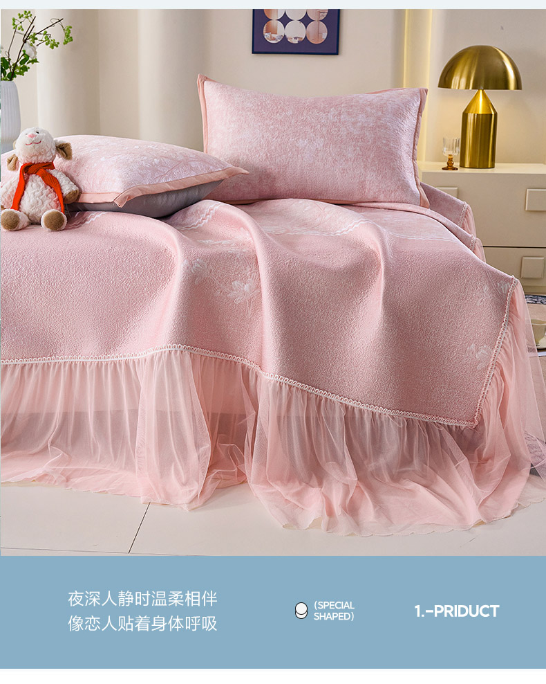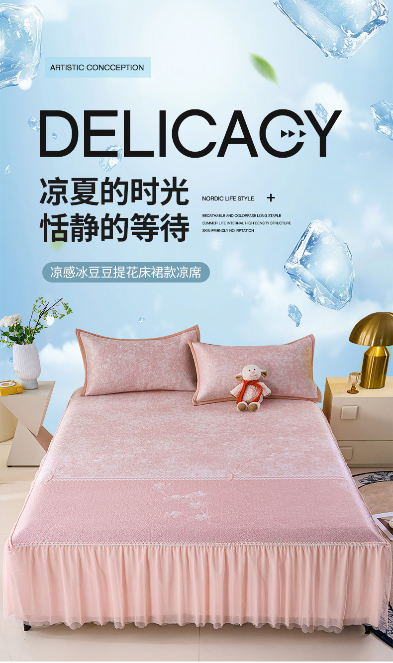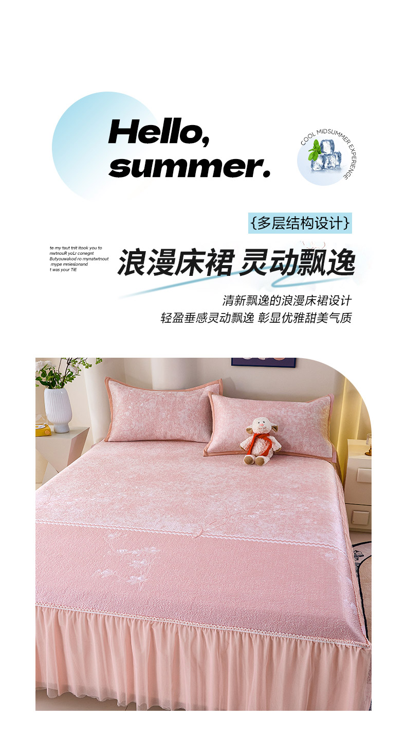 商品名称:莱家富 2026新款A类凉感豆豆席床裙款凉席席子-闭月羞花 闭月羞花-粉