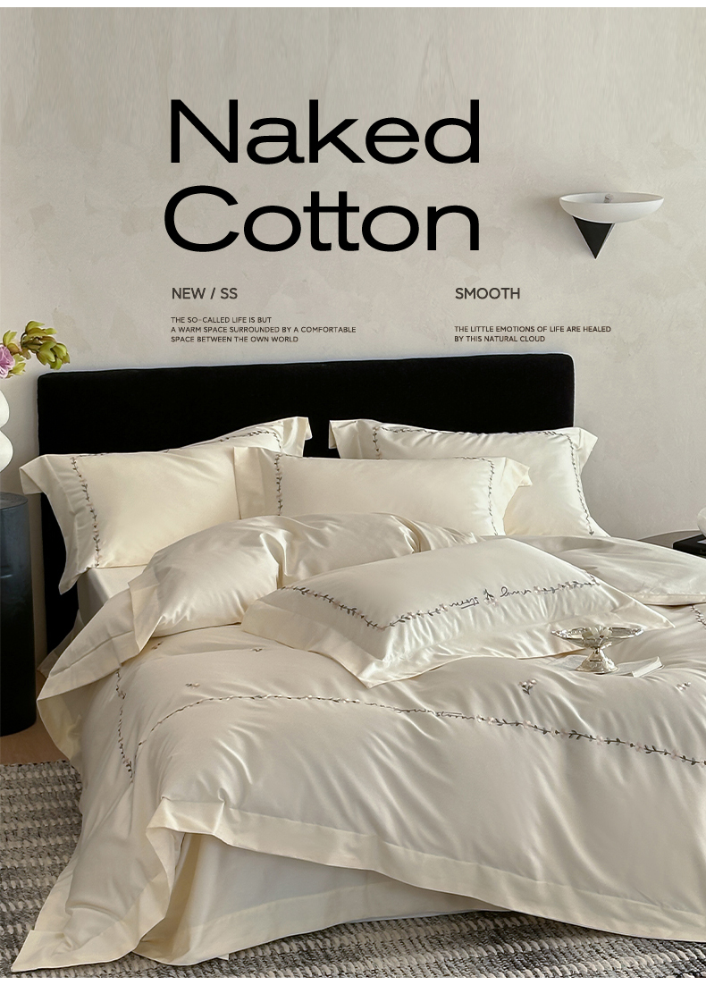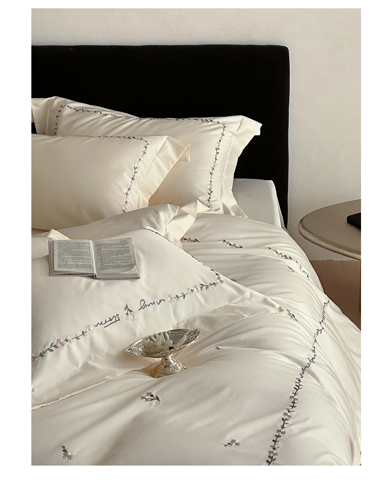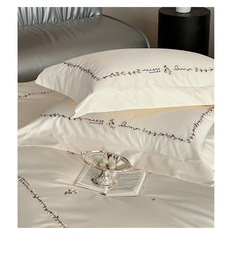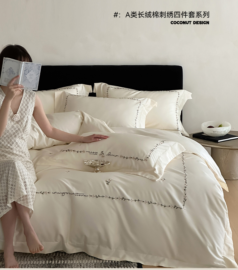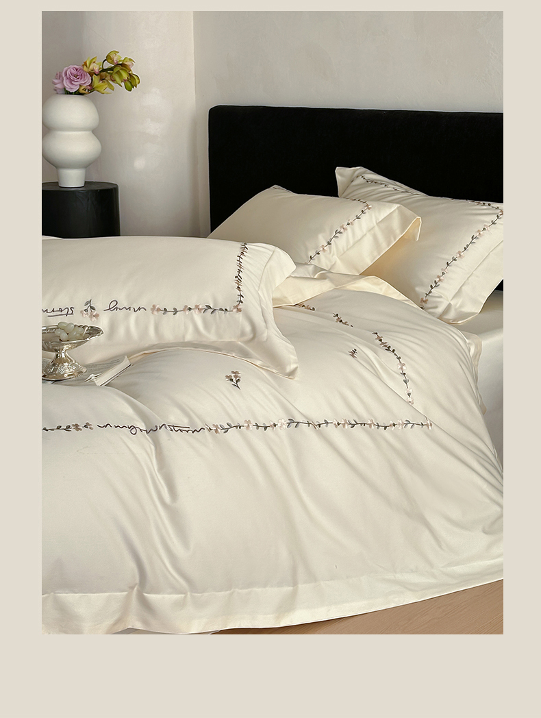 名品优仓 2026新款长绒棉50s全棉纯棉刺绣宽边款四件套-花园密语 花园蜜语-奶芋色