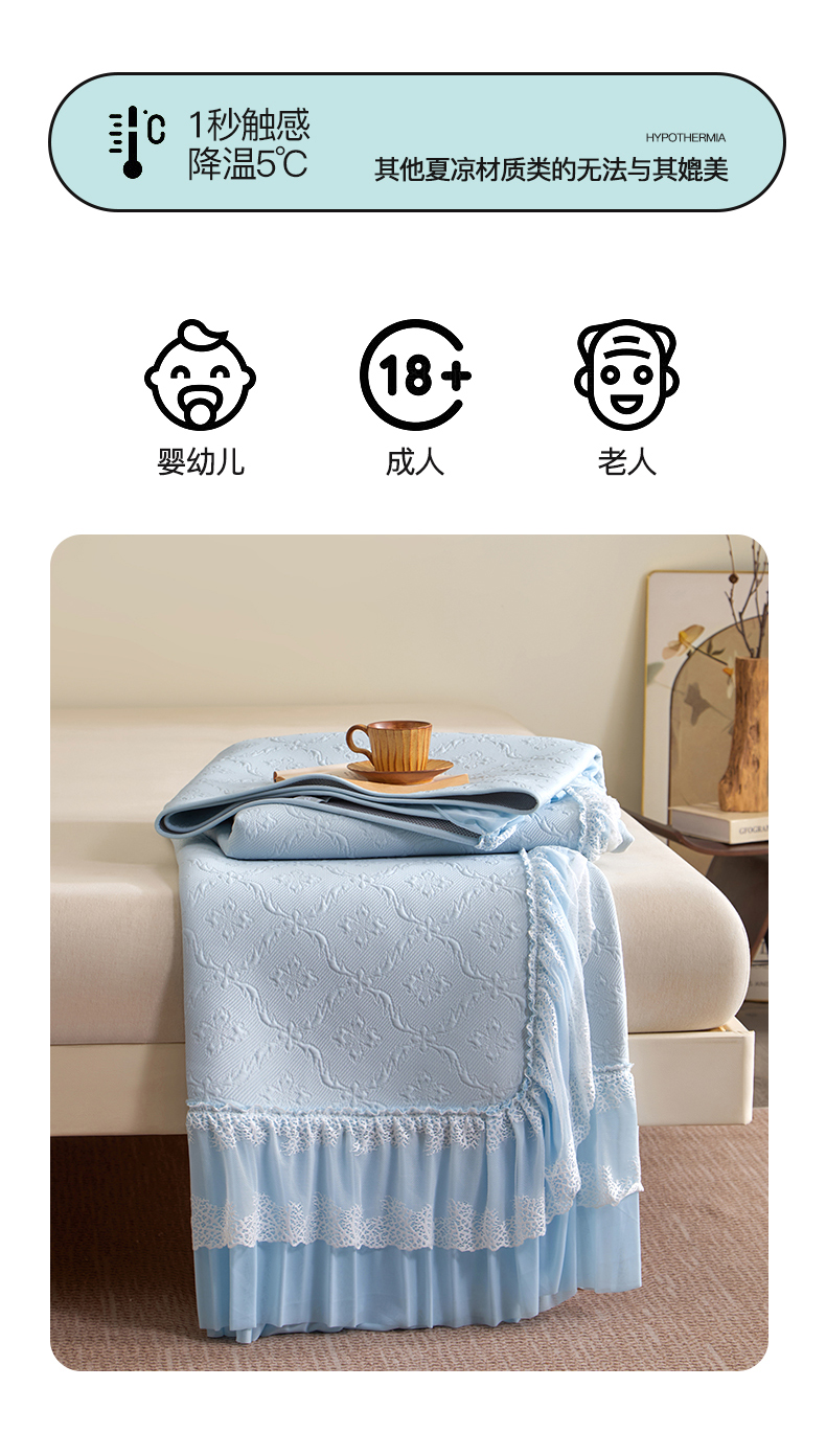 (总)航途席业 2026新款A类凉感豆豆床裙款凉席三件套-系列五,冰蓝绮梦,奶白绮梦,青柠绮梦,樱粉绮梦,月灰绮梦