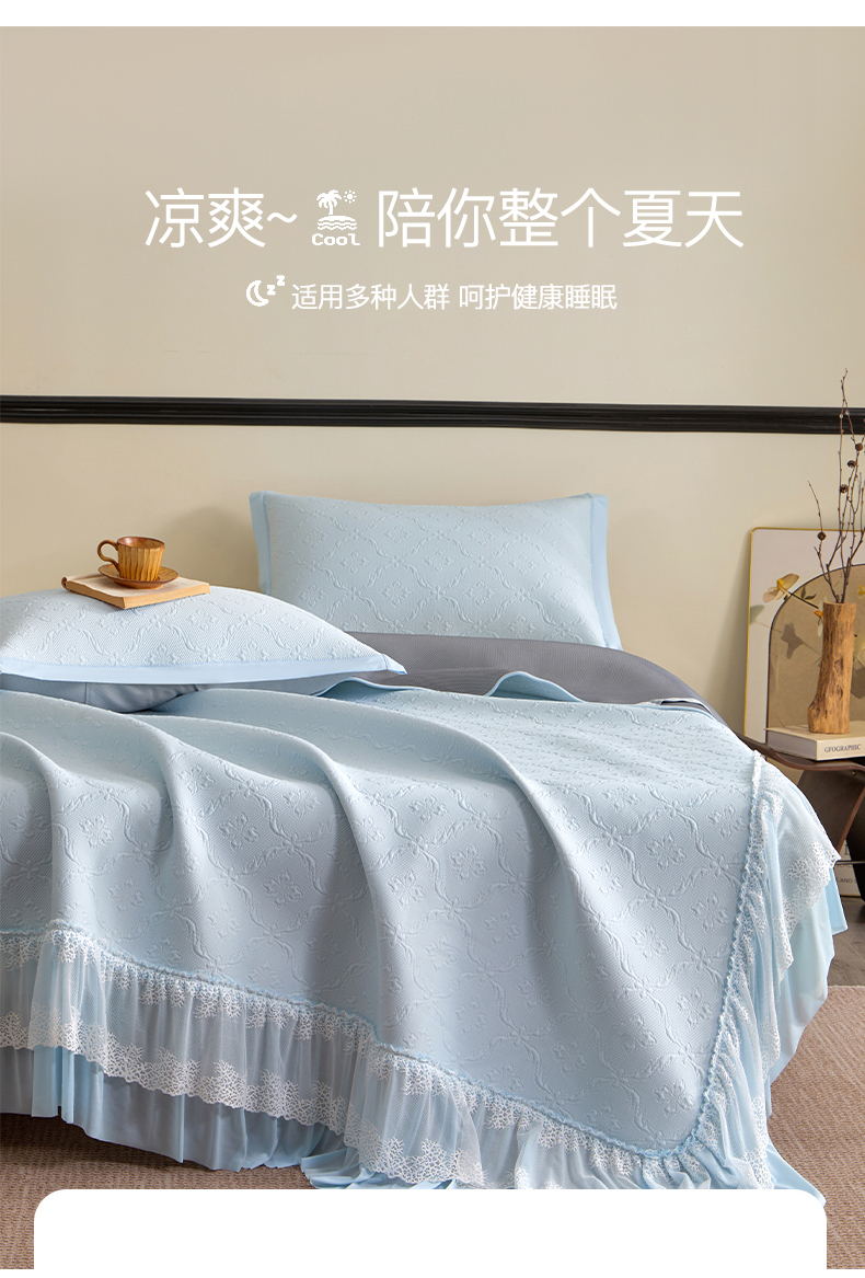 (总)航途席业 2026新款A类凉感豆豆床裙款凉席三件套-系列二,冰蓝鎏纹,奶白鎏纹,浅粉鎏纹,青柠鎏纹,柔粉鎏纹,雾灰鎏纹