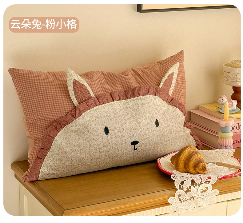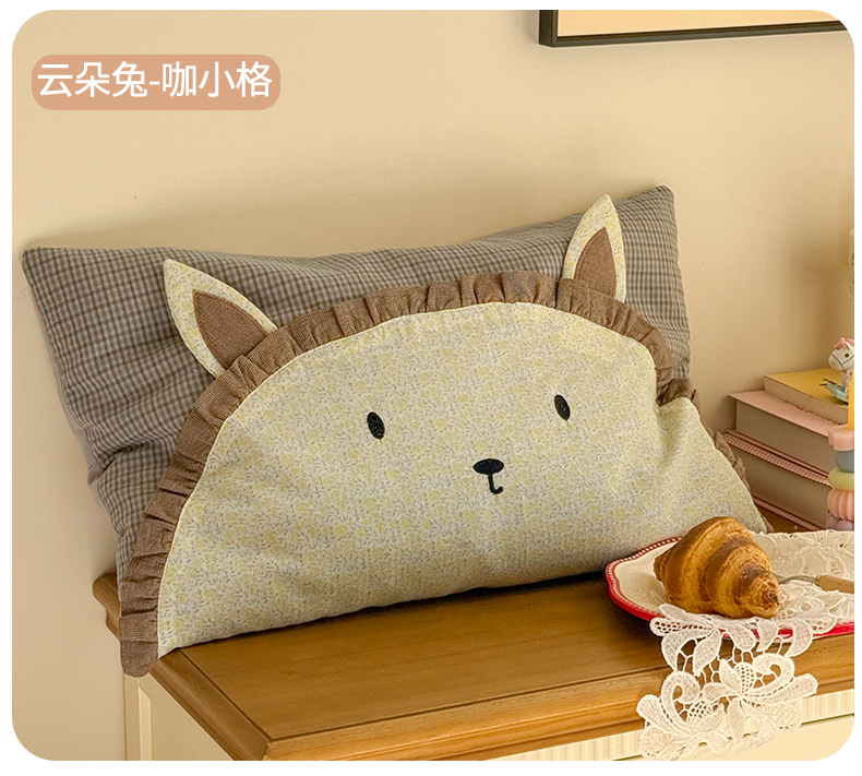 (总)蔻眠 云朵兔-全棉刺绣卡通荞麦护颈枕头儿童学生荞麦枕芯,主图,云朵兔-粉小格,云朵兔-咖小格,云朵兔-绿小格,云朵兔-驼小格