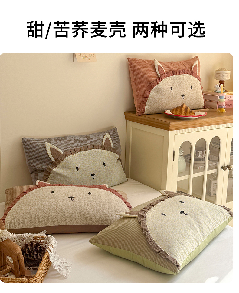 (总)蔻眠 泡芙猫-全棉双层纱刺绣荞麦护颈枕头儿童卡通枕芯,主图,泡芙猫-绿,泡芙猫-粉,泡芙猫-灰,泡芙猫-黄