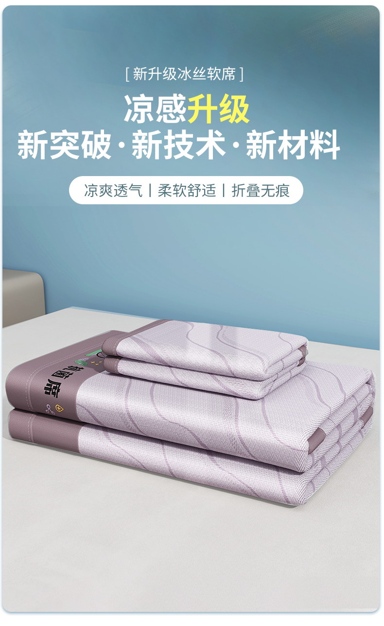 当前位置: 91家纺网 > 商品网购 > 床上用品 > 凉席 > 冰丝席 > yyds网供 2026新款艾草抗菌冰丝凉席碳光席冰丝席床笠水洗折叠空调软席子三件套学生宿舍 床席款-艾草抗菌冰丝-紫