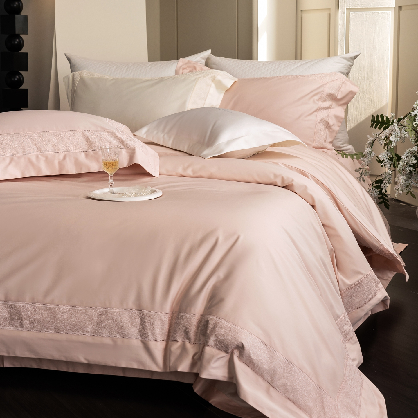 商品名称:馨蕊家居 2026新款100S全棉纯棉高定高精密刺绣四件套-兰芙 兰芙-蔷薇粉