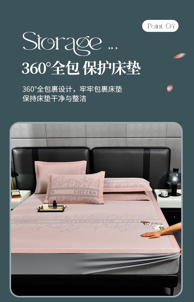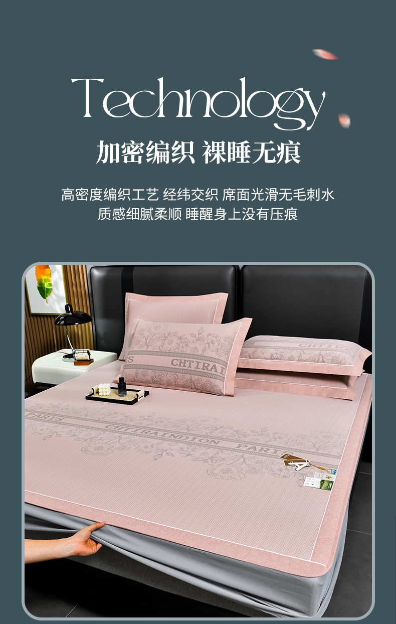 (总)2023新款超精密冰丝席-小斜纹系列-床笠款藤席凉席竹席,粉色,蓝色,绿色,银灰